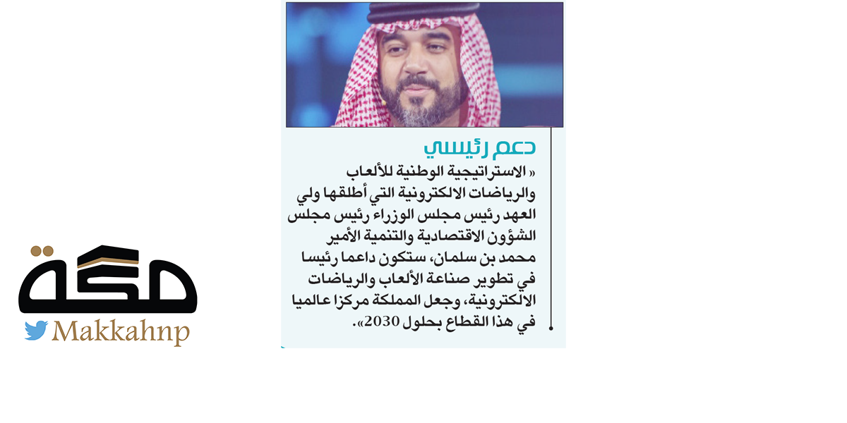 " الاستراتيجية الوطنية للألعاب والرياضات الالكترونية التي أطلقها ولي العهد رئيس مجلس الوزراء رئيس مجلس الشؤون الاقتصادية والتنمية الأمير محمد بن سلمان، ستكون داعما رئيسا في تطوير صناعة الألعاب والرياضات الالكترونية وجعل المملكة مركزا عالميا في هذا القطاع بحلول عام 2030".