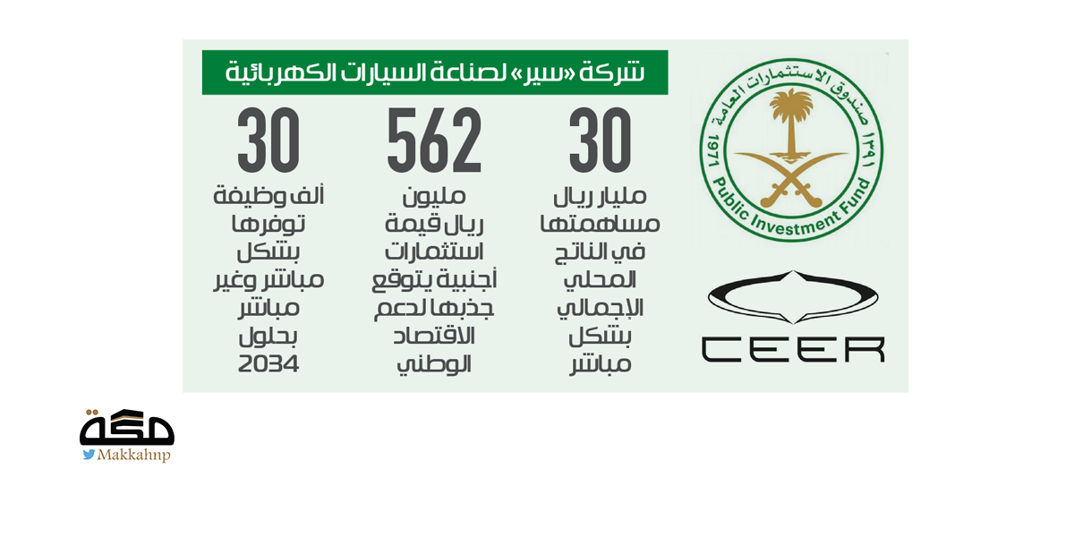 أعلن ولي العهد رئيس مجلس الوزراء، رئيس مجلس إدارة صندوق الاستثمارات العامة الأمير محمد بن سلمان أمس، إطلاق شركة «سير»، أول علامة تجارية سعودية لصناعة السيارات الكهربائية في المملكة.