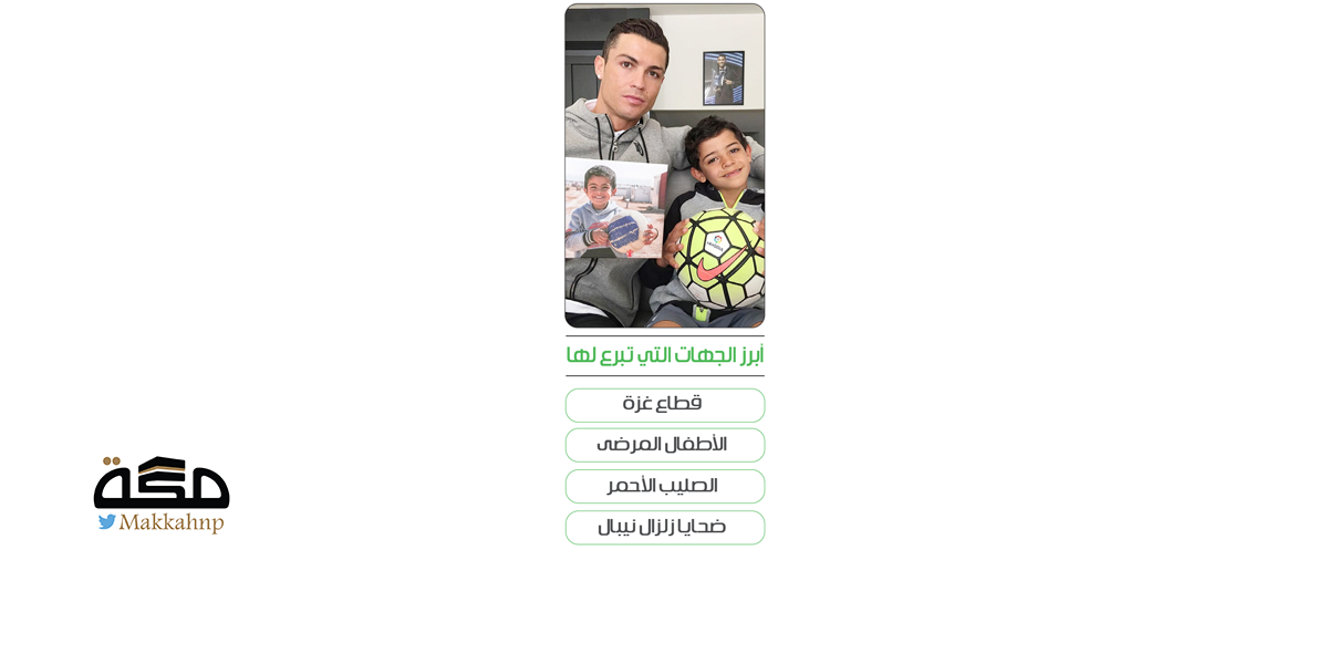 تربع اللاعب البرتغالي ونجم نادي النصر كريستيانو رونالدو على قائمة أكثر الشخصيات الرياضية إقبالا على الأعمال الخيرية، بالنظر إلى حجم الأموال التي يتبرع بها لفائدة المؤسسات الخيرية، وأعمال الإحسان، بعد أن أسهم في دعم ضحايا زلزال تركيا وسوريا، ومدهم بالمؤن والغذاء والكساء.