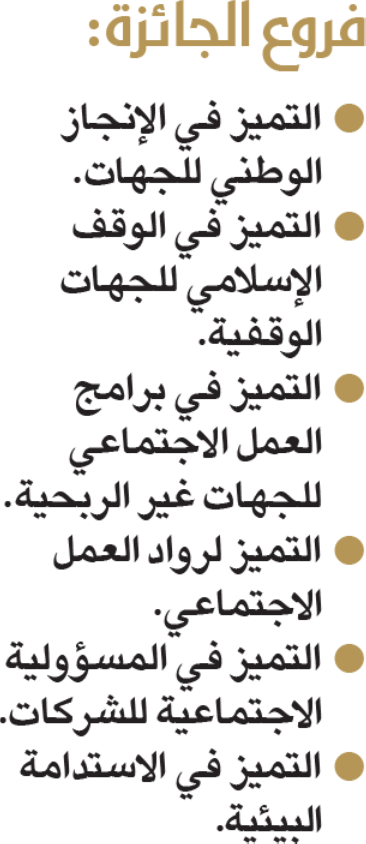 • التميز في برامج العمل الاجتماعي للجهات غير الربحية.