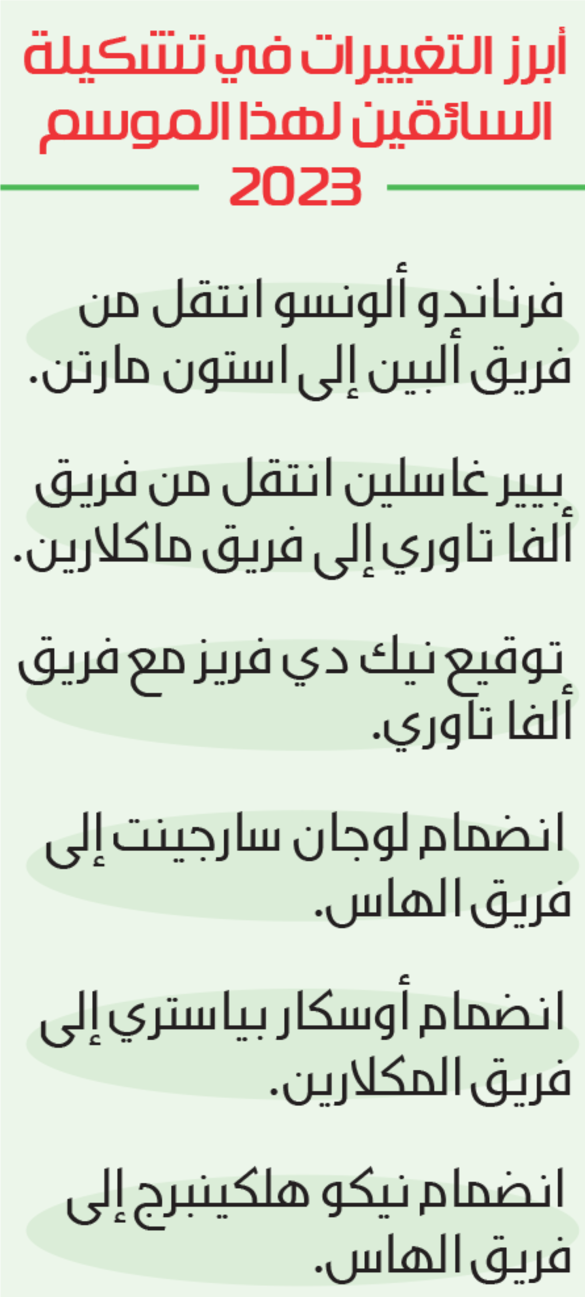 أبرز التغييرات في تشكيلة السائقين لهذا الموسم 2023