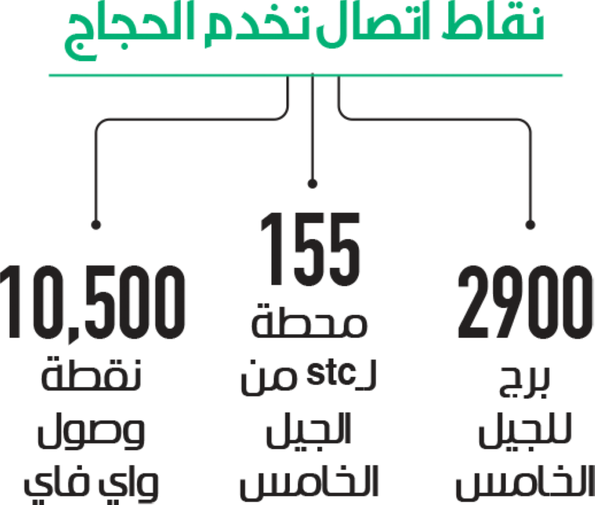 خصصت هيئة الاتصالات والفضاء والتقنية أكثر من 6000 برج اتصالات لتوفير خدمات الإنترنت المجانية للحجاج في مدينتي مكة المكرمة والمدينة المنورة، والمشاعر المقدسة.