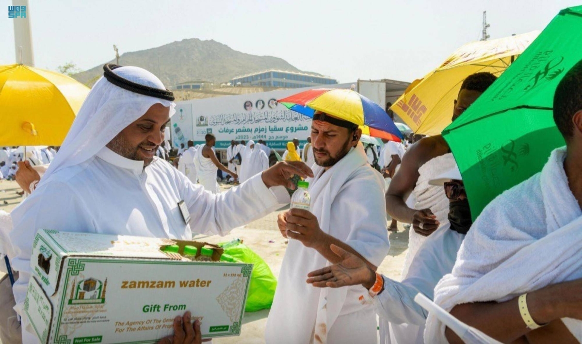 في ظل درجة الحرارة المرتفعة في المشاعر المقدسة كانت مياه زمزم هي الملجأ لحجاج بيت الله الحرام، وقد وزعت الرئاسة العامة لشؤون المسجد الحرام والمسجد النبوي مليون عبوة ماء زمزم على ضيوف الرحمن، وذلك من خلال عدد من البرادات المهيأة والمجهزة لذلك.