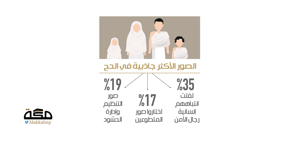 وأظهر الاستطلاع الذي أجري عن مرئيات المواطنين حيال موسم حج هذا العام وشارك فيه 1125، أن 35% من المشاركين أشاروا إلى أن أكثر ما لفت انتباههم من صور الحج كانت صور أفراد الأمن وهم يقدمون المساعدات الشخصية للمرضى والعجزة من الحجاج.