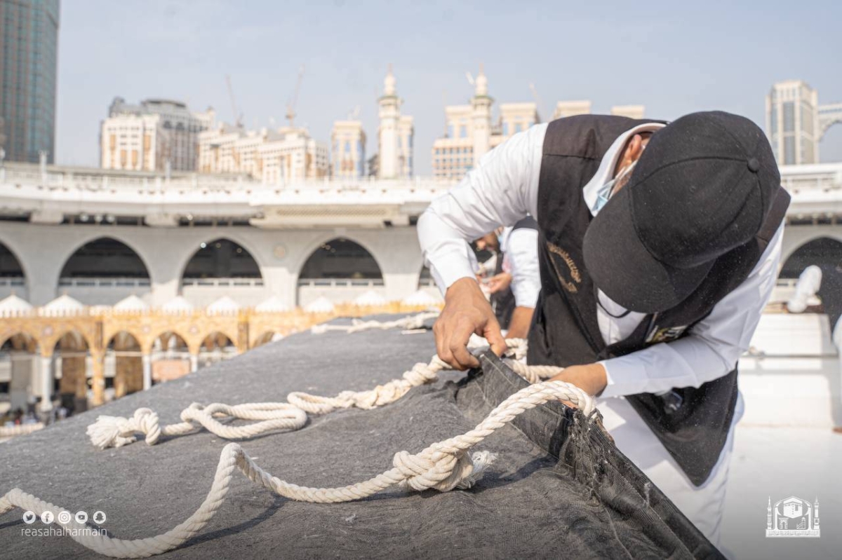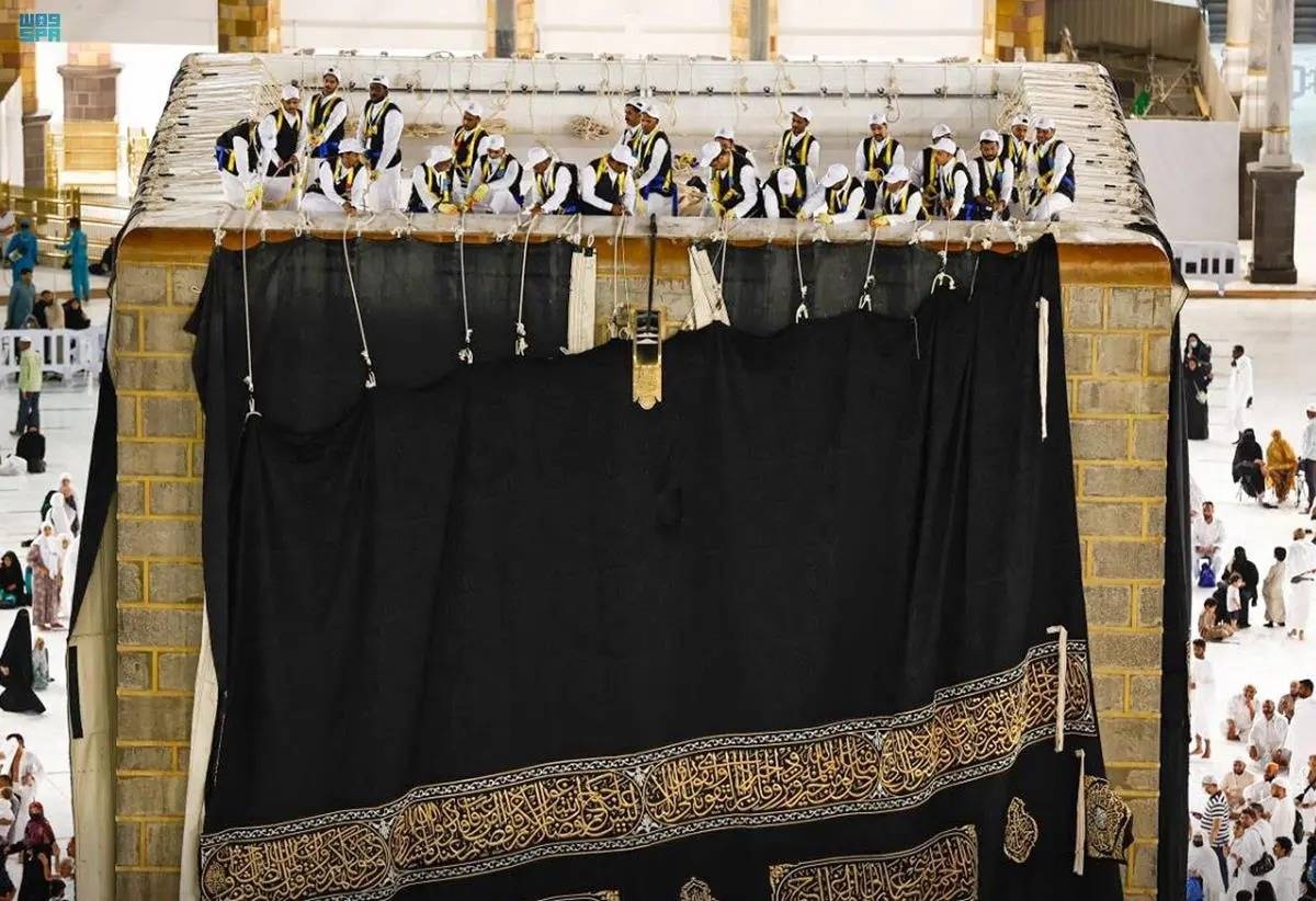 تستبدل الرئاسة العامة لشؤون المسجد الحرام والمسجد النبوي غدا كسوة الكعبة المشرفة على أيدي 130 فنيا وصانعا، جريا على العادة السنوية.