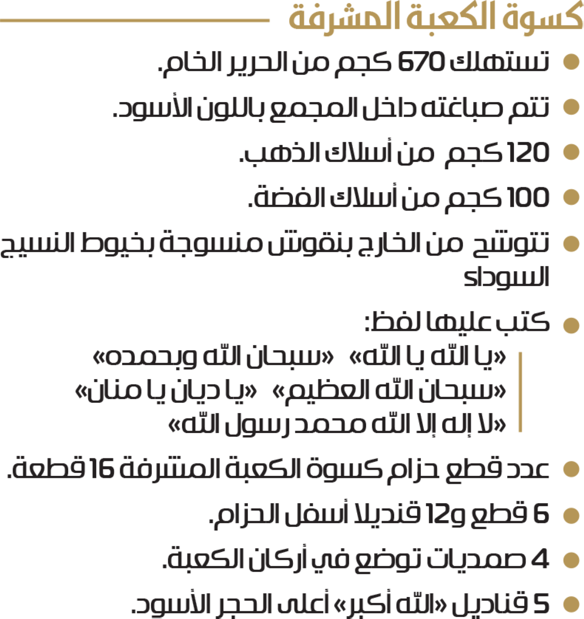 - عدد قطع حزام كسوة الكعبة المشرفة 16 قطعة.