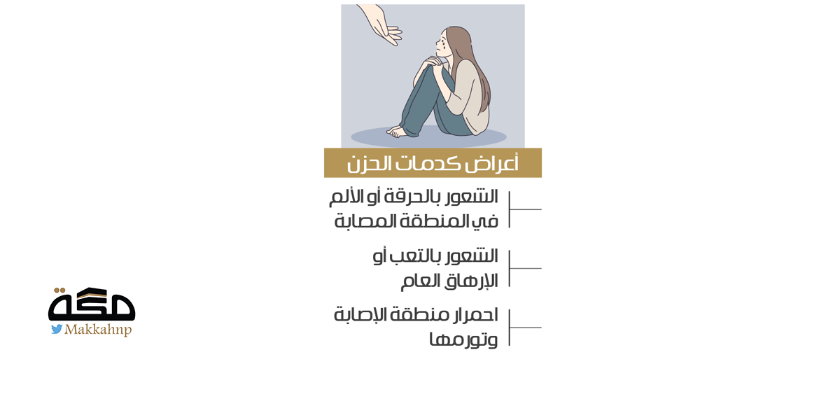 وأوضحت المدينة أن كدمات الحزن مؤلمة وتظهر في أي جزء من أجزاء الجسم، خاصة الذراعين والساقين والوجه، وسميت بكدمات الحزن لأنها غالبا ما تبدأ بالظهور بشكل تلقائي بعد التعرض للتوتر الشديد وللصدمات العاطفية.