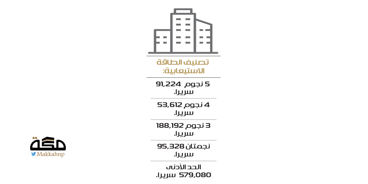وبناء على الدراسات الإحصائية التي أجريت في 2018، تشير النتائج إلى أن الطاقة الاستيعابية في مكة المكرمة تصل إلى 1,010,480 سريرا، موزعة على فنادق مصنفة طاقتها الاستيعابية إلى 7 تصنيفات، معظمها مصنفة على أنها منخفضة التكلفة (5 نجوم، 4 نجوم، 3 نجوم، نجمتان، الدرجة الثالثة، الدرجة الثانية، الحد الأدنى).