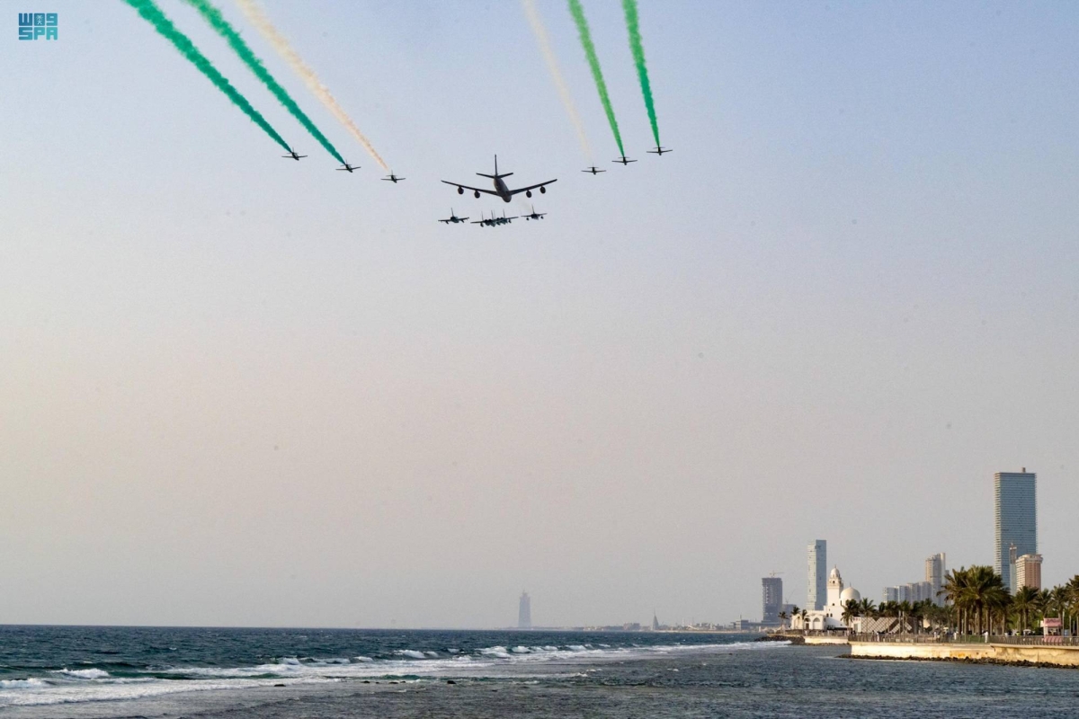 وقدمت القوات الجوية الملكية السعودية عروضا جوية مهيبة بمجموعة من أسراب الطائرات التي شملت: طائرات الـ «تايفون»، والـ «F - 15 إس»، و«تورنيدو»، و« F- 15 سي»، بالإضافة إلى سرب فريق طائرات الصقور السعودية المكون من طائرات الهوك الاستعراضية.