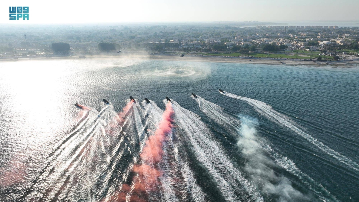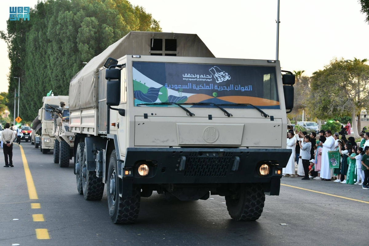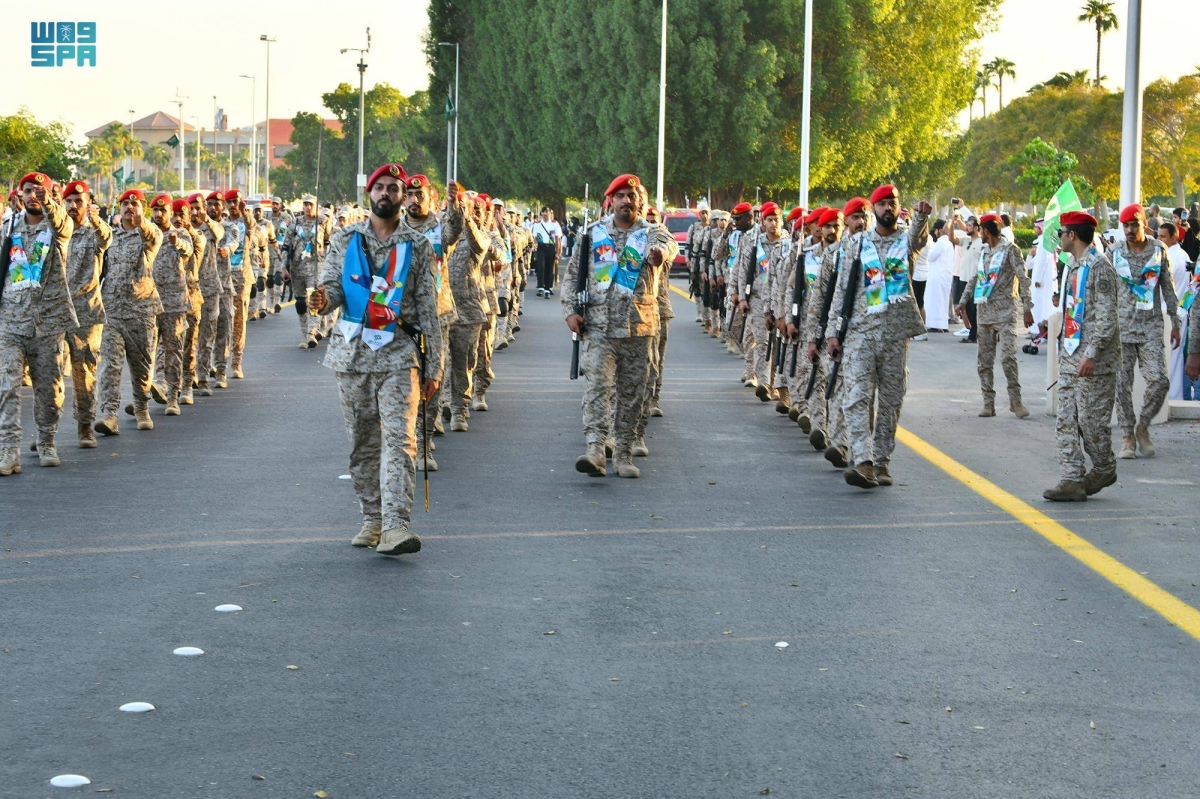 انطلقت مسيرات المشاة والآليات التابعة للقوات البحرية في الجبيل أمس الأول، على شاطئ الفناتير بمدينة الجبيل الصناعية، ضمن فعاليات احتفاء المحافظة باليوم الوطني الـ93 للمملكة.