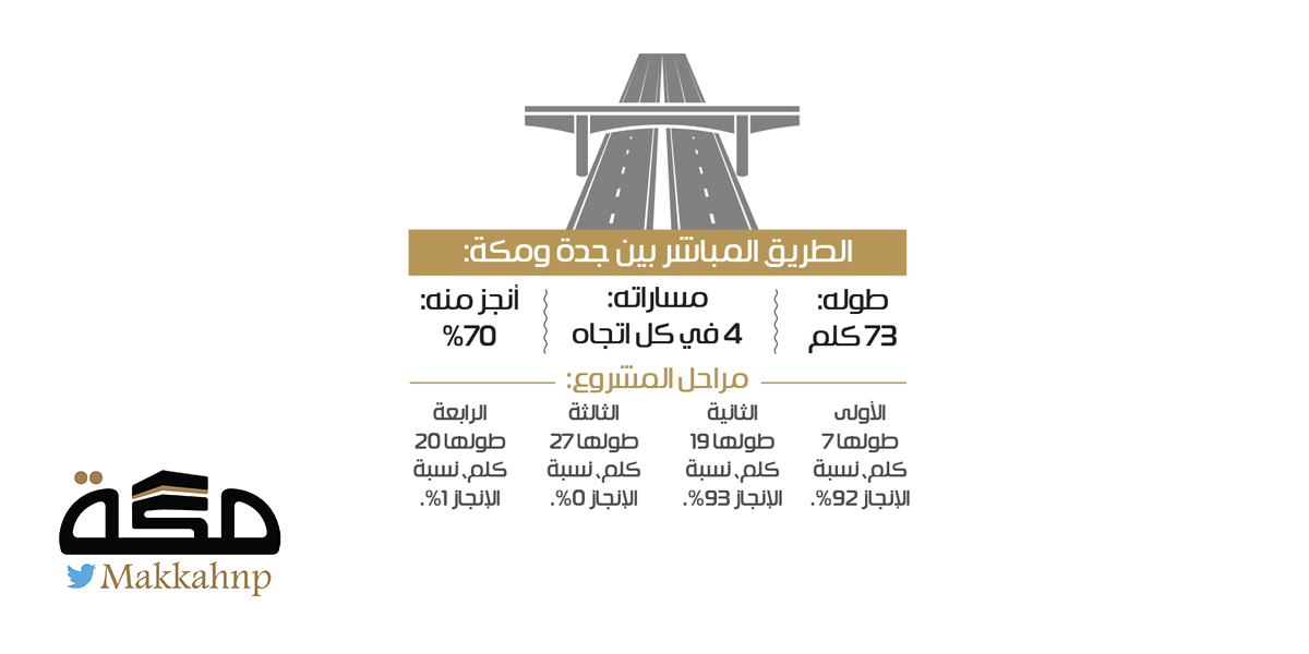 دخل مشروع الطريق المباشر بين جدة ومكة المكرمة مرحلته الرابعة والأخيرة والبالغ طولها 20 كلم، حيث شرعت الهيئة العامة للطرق، في تنفيذها أخيرا من أجل الانتهاء من الطريق بشكل كامل، والذي سيسهم في تحقيق مستهدفات قطاع الحج والعمرة.