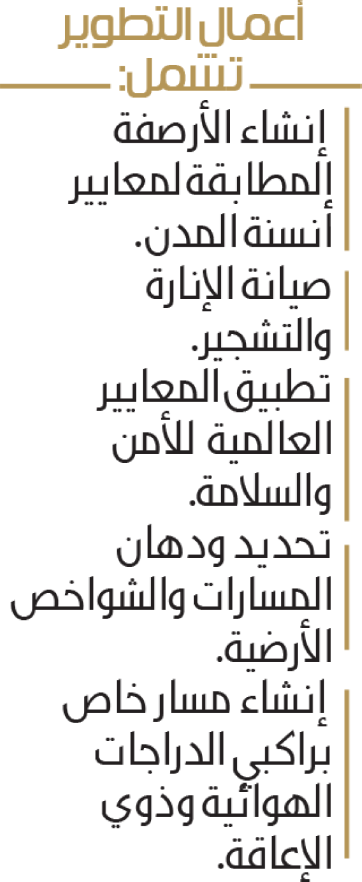 • إنشاء مسار خاص براكبي الدراجات الهوائية وذوي الإعاقة.