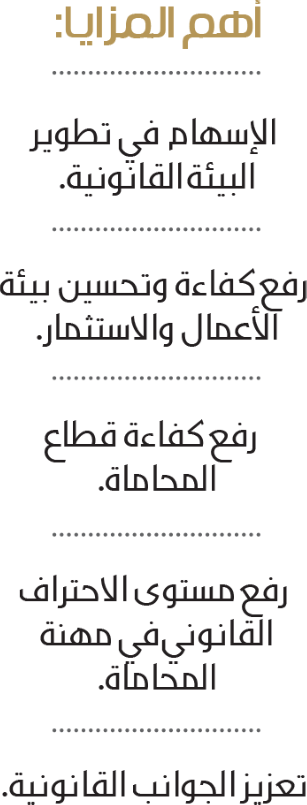 - رفع مستوى الاحتراف القانوني في مهنة المحاماة.