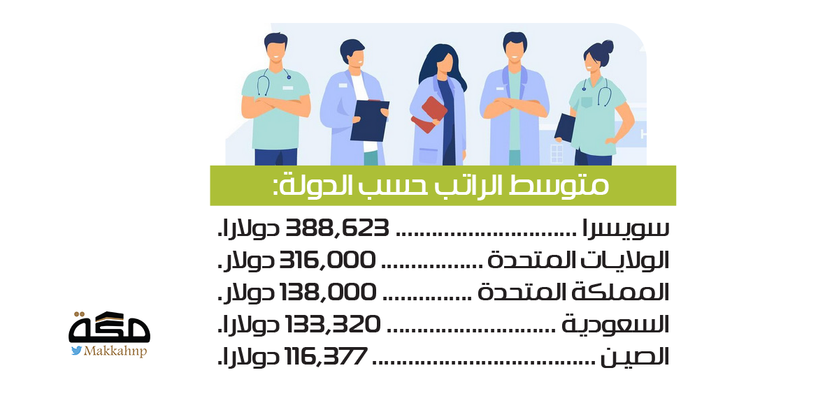 وجاء المركز الأول من حيث ارتفاع أجور الأطباء من نصيب سويسرا بـ388,623 دولارا سنويا، وحلت أمريكا في المركز الثاني بـ316,000 دولار سنويا.