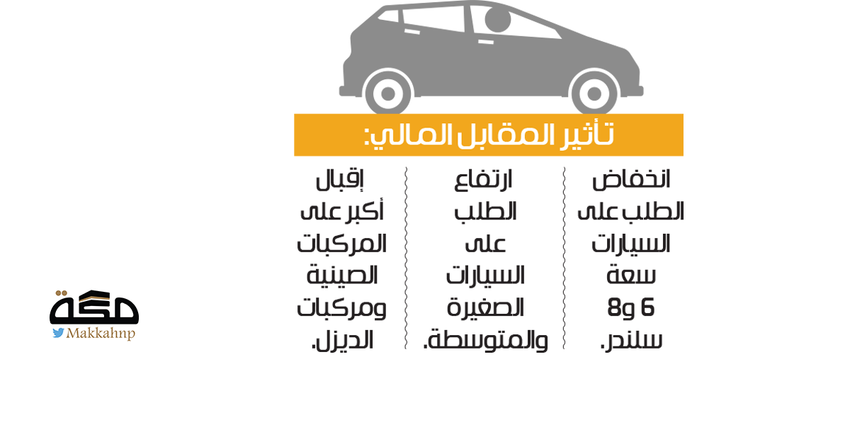 - انخفاض الطلب على السيارات سعة 6 و8 سلندر.