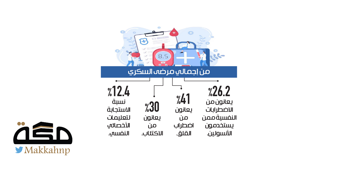 أظهرت الدراسات أن مريض السكري في بداية تشخيصه خلال فترة علاجه، يعاني ضغوطات واضطرابات، إذ إن 45% من الحالات النفسية المرتبطة بالمرض لم تشخص من إجمالي المصابين، وفقا للمركز الوطني لتعزيز الصحة النفسية.
