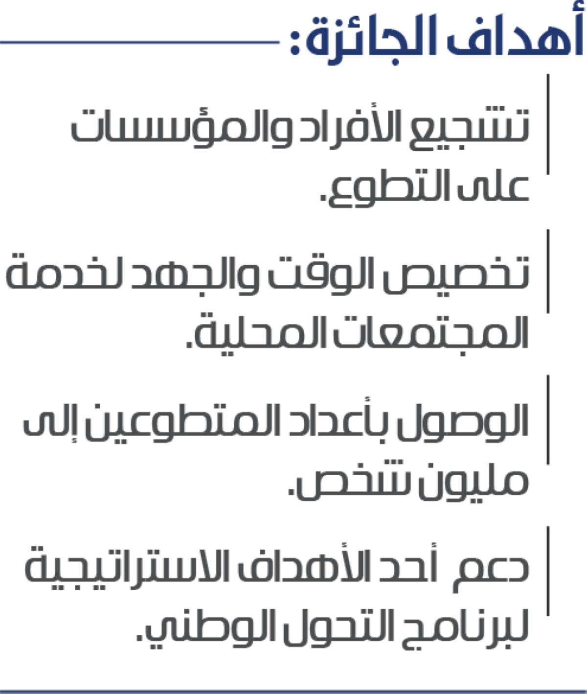 - الوصول بأعداد المتطوعين إلى مليون شخص.