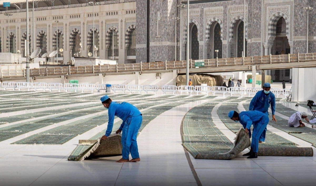 ومن الخدمات المقدمة تكثيف أعمال غسل وتعقيم المسجد الحرام وسطحه وساحاته ومرافقه وتهيئته للزوار والمصلين، من خلال القيام بعدد 10 غسلات يوميا وفق منظومة عمل يقوم عليها 4000 عامل وعاملة يشرف عليهم 200 مشرف سعودي يعملون على مدار الساعة، و120 مهندسا وفنيا بشكل دائم قبيل كل صلاة، وذلك لتغذية شبكة الصوت 8 آلاف سماعة داخل المسجد الحرام وساحاته، وتوفير 3516 دورة مياه، و9.155 حافظة يوميا، و35.000 سجاد جديد بجميع مصليات المسجد الحرام وساحاته، 3000 عربة يدوية و 2000 عربة كهربائية، وعدد 6000 من دافعي العربات، وتشغيل 1000 معدة وآلة للمشاركة في أعمال الغسيل على مدار اليوم، لتصل نسبة الاستيعاب إلى مليون و600 ألف مصل.