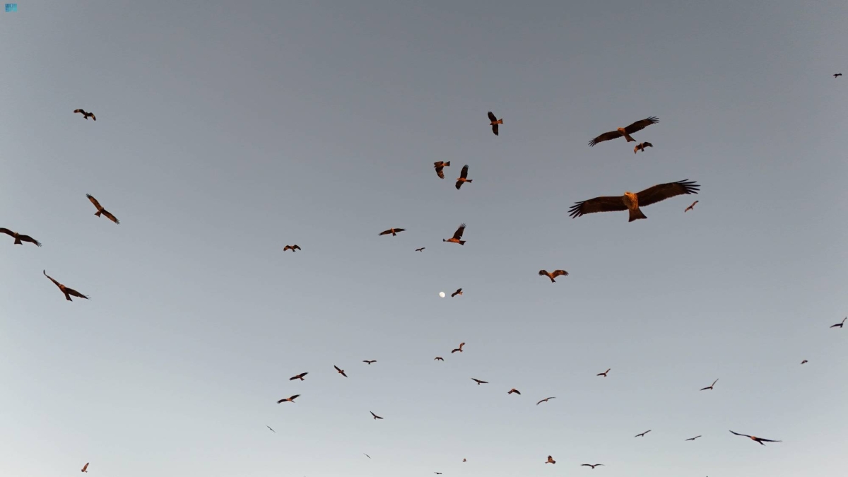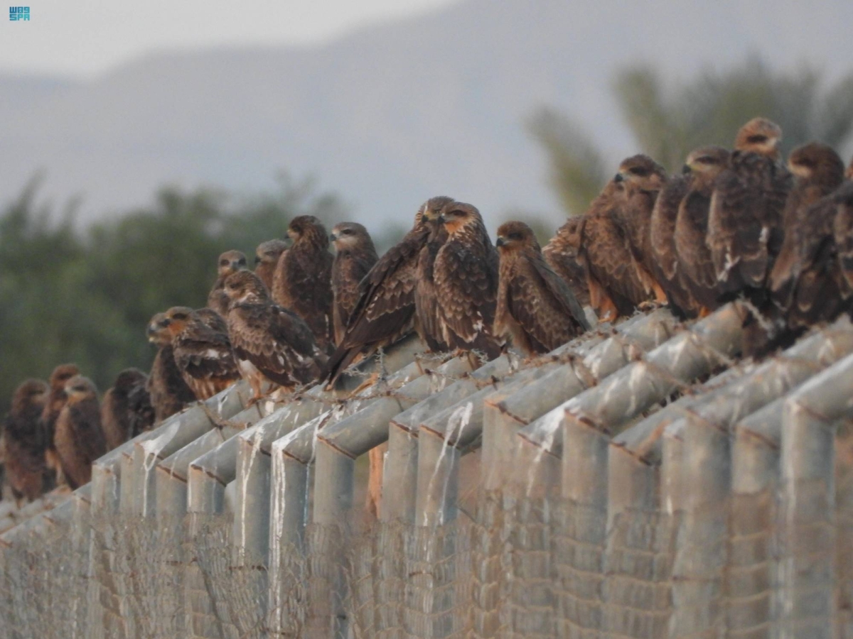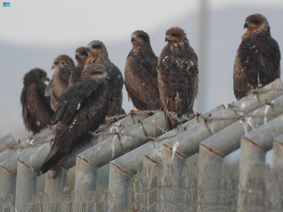 وتم رصد أعداد كبيرة من طيور الحدأة السوداء على أطراف مدينة تبوك، وحسب ما ورد في الموسوعة العلمية لجامعة تبوك، يوصف هذا الطائر بميل لونه إلى الأحمر البني، والذيل على شكل V يتحرك عند الطيران للحفاظ على التوازن، ويكون البالغة منها ذات منقار أصفر اللون، ولديها قناع قائم حول العين، وأطراف ريش الجناح باهتة اللون وعلى الصدر نقط داكنة واضحة بينما البطن باهت دون أي تباين مع أسفل الذيل.