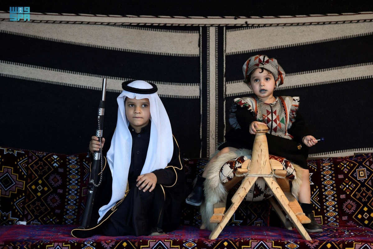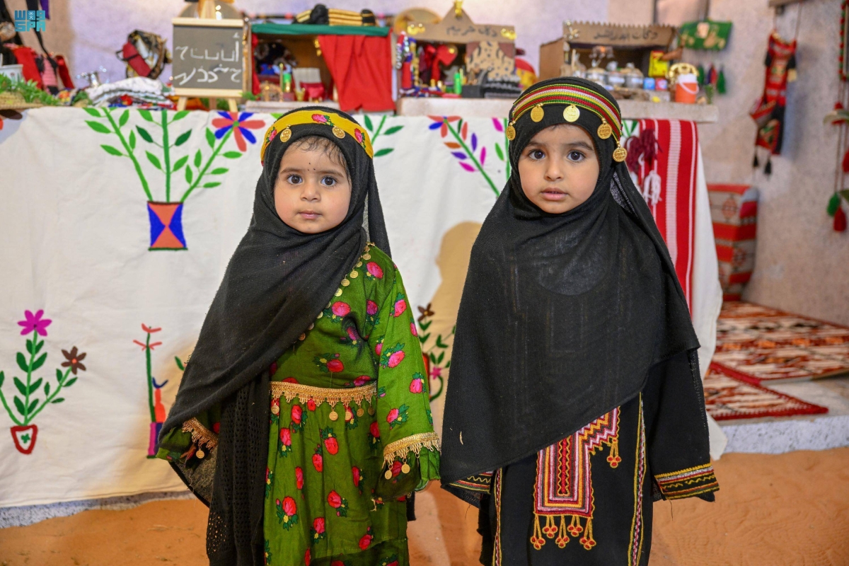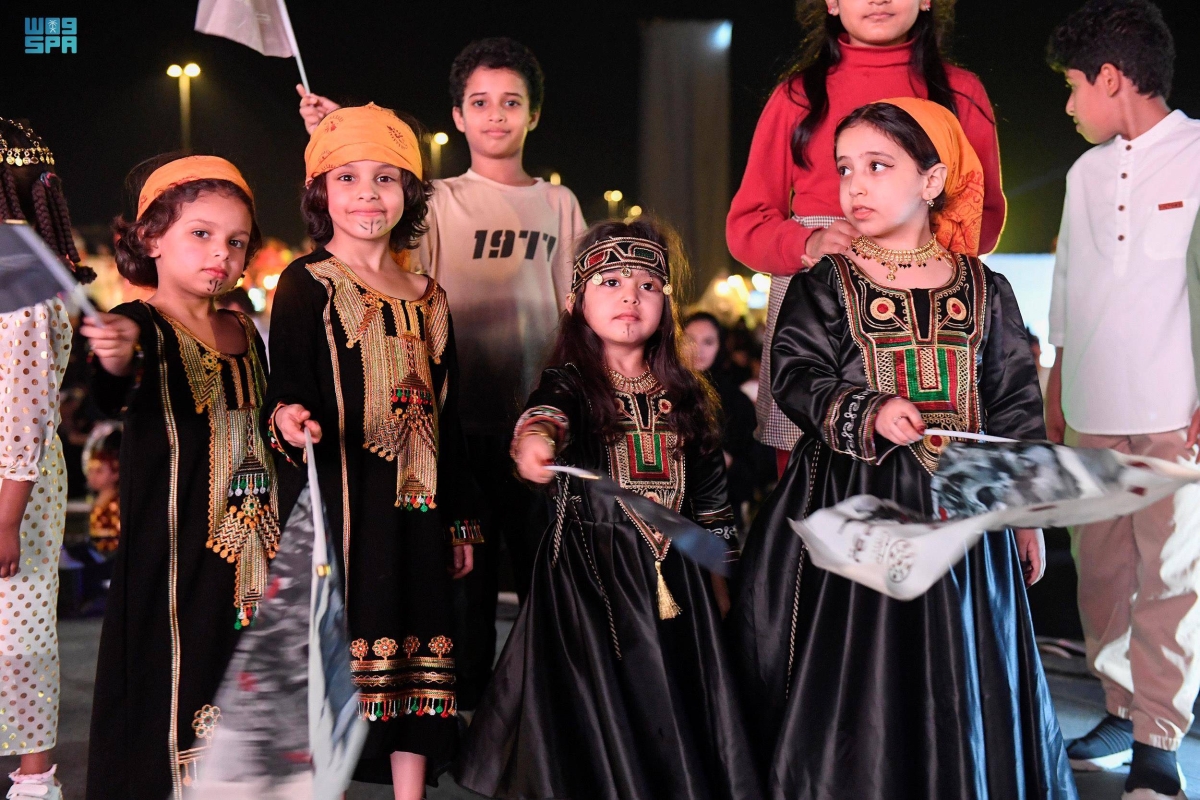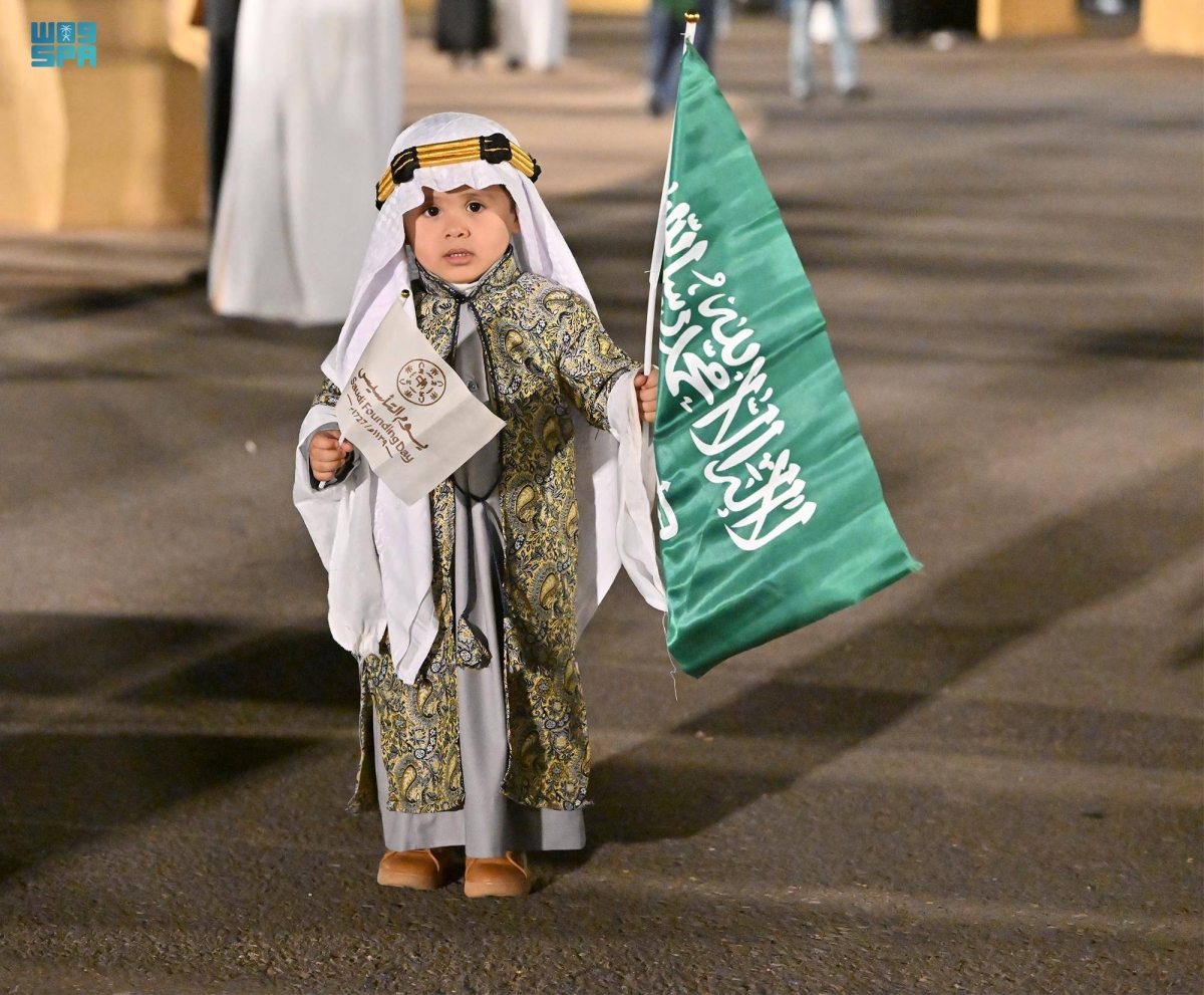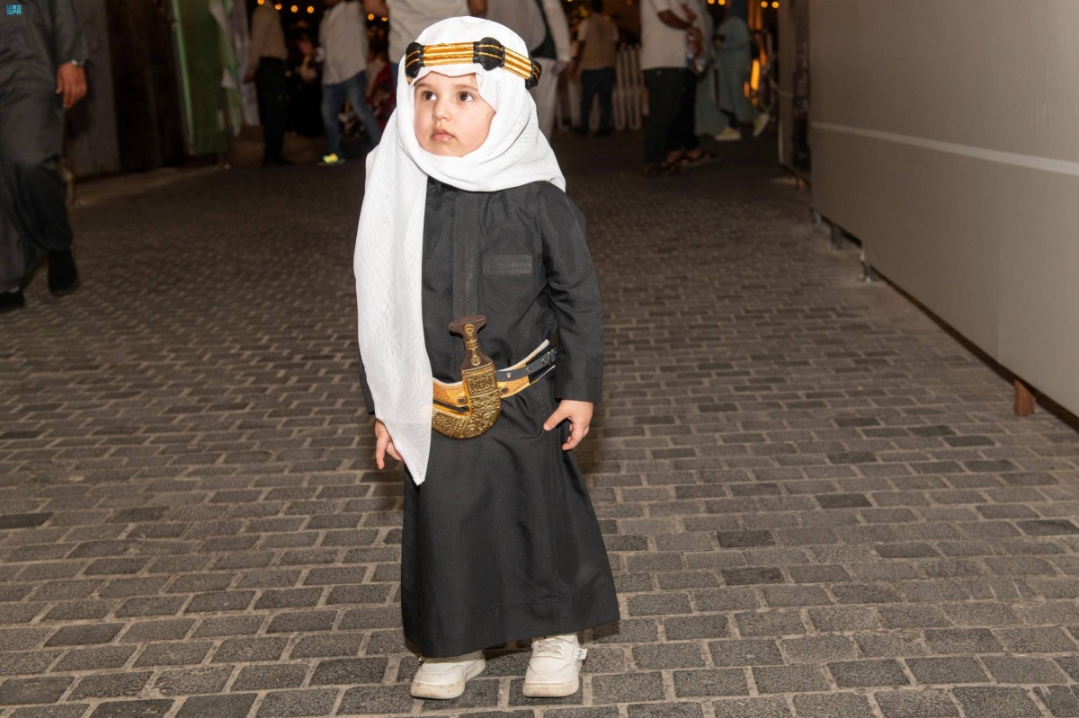 عبر الأطفال عن فرحتهم بمشاركتهم في فعاليات يوم التأسيس، بارتداء الأزياء التراثية التي تعكس تراث المناطق، وتعبر عن فرحتهم بهذه المناسبة العظيمة، التي تعزز الجذور الراسخة للمملكة في نفوسهم، وذلك خلال رصد الصور التذكارية بالزي الشعبي ليوم تأسيس المملكة.