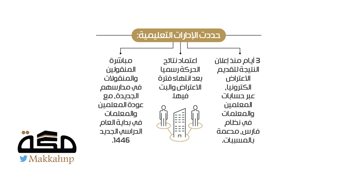 - مباشرة المنقولين والمنقولات في مدارسهم الجديدة، مع عودة المعلمين والمعلمات في بداية العام الدراسي الجديد 1446.