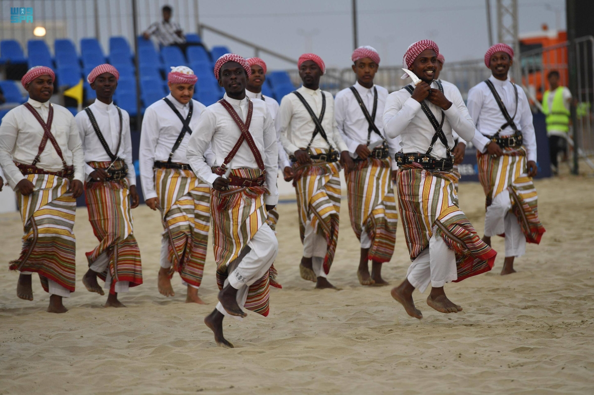 وتبرز رقصة «السيف» كأشهر الرقصات الشعبية بجازان، من خلال تناغم الرقصة بالسيف وبتناسق حركة اليدين والرجلين مع قرع الطبول.