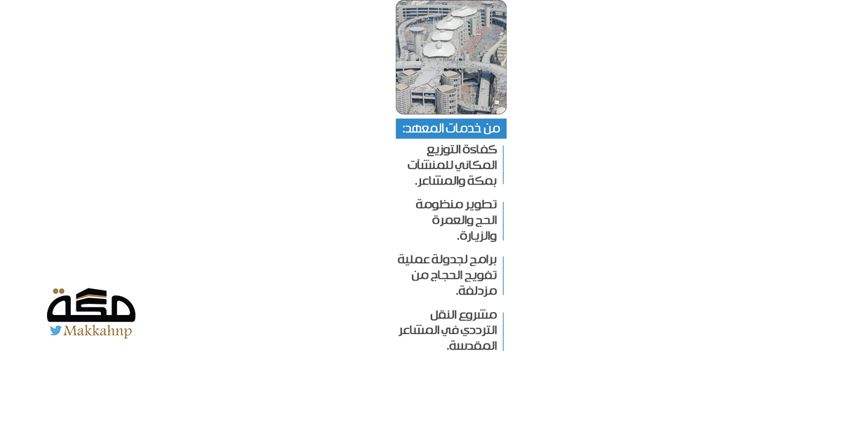 يعمل معهد خادم الحرمين الشريفين لأبحاث الحج والعمرة في جامعة أم القرى، على دراسة توظيف التقنيات الرقمية لبحث كفاءة التوزيع المكاني للمنشآت بمكَة المكرمة والمشاعر المقدسة، وتطوير منظومة الحج والعمرة والزِيارة، ودعم القرار الرسمي لدى المسؤولين والجهات العاملة في الحج والعمرة بالبيانات والمعلومات والأبحاث والدراسات، لتحقيق رؤى المعهد التي تتلخص في تخطيط متكامل وحشود منظمة وخدمات مميزة وبيئة آمنة وخدمات راقية.