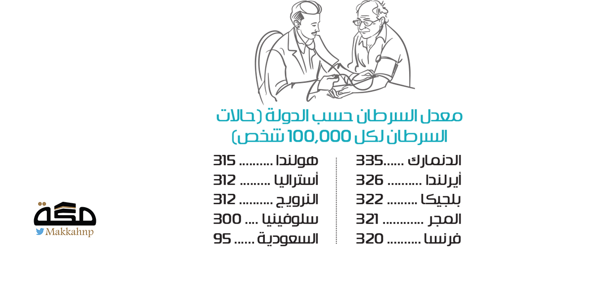 احتلت المملكة ترتيبا متأخرا من حيث عدد حالات الإصابة بالسرطان لكل 100 ألف، بواقع 95 إصابة بالسرطان لكل 100 ألف من السكان، مما جعلها في المركز الـ164 بين دول العالم، وذلك حسب تقرير لموقع وايز فوتر.