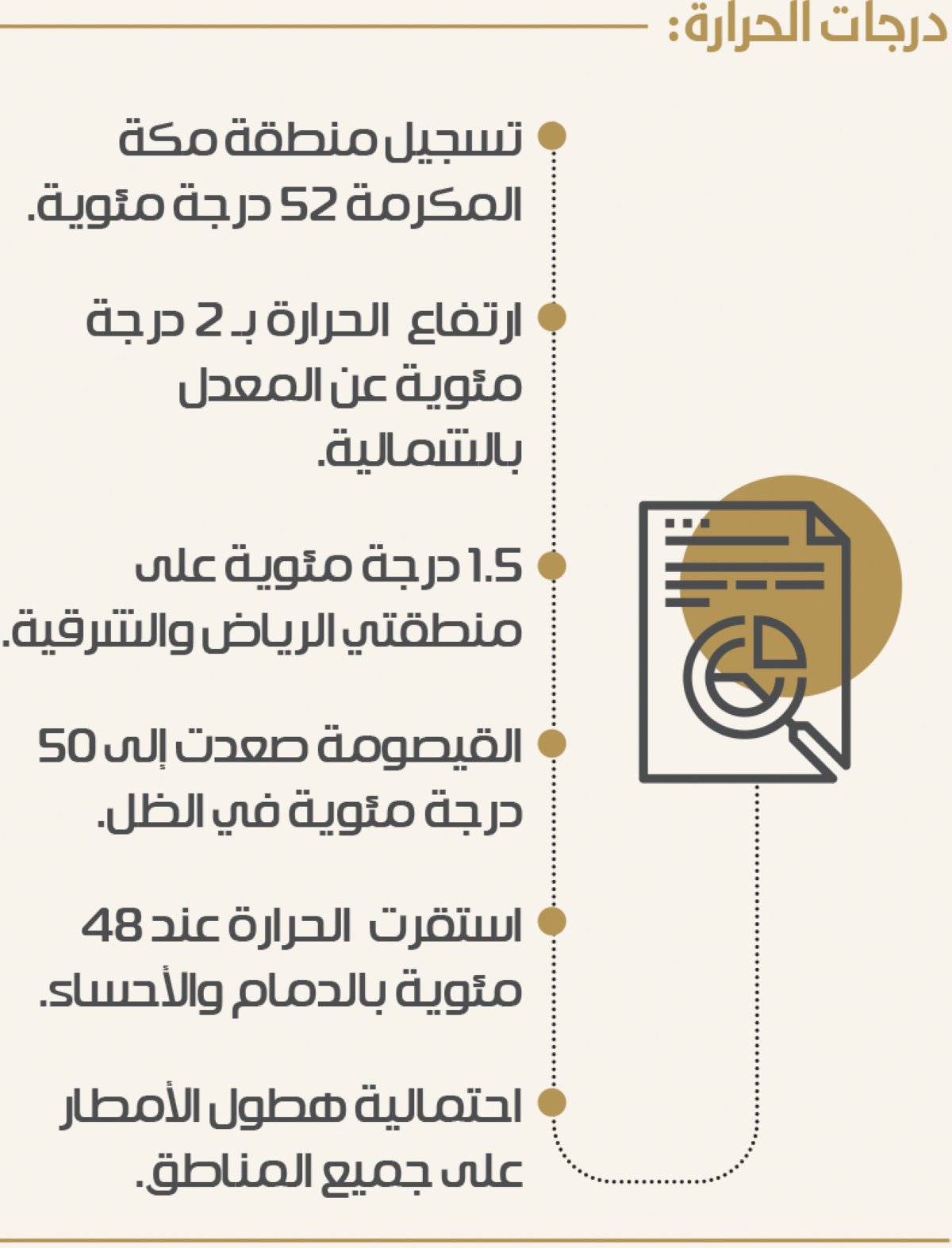 - تسجيل منطقة مكة المكرمة 52 درجة مئوية.
