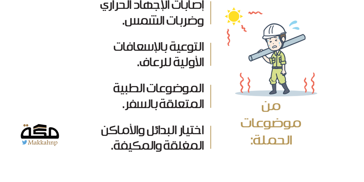 وأوضح التجمع الصحي أن الحملة تأتي بالتزامن مع موسم الصيف وما يصحبه من ارتفاع لدرجات الحرارة، وما يحدث كثيرا من إصابات الإجهاد الحراري وضربات الشمس، إضافة إلى التوعية بالإسعافات الأولية للرعاف والغرق، نظرا للإقبال الكبير على المسابح خلال هذه الفترة.