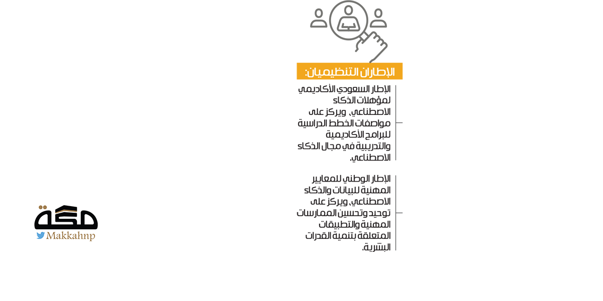 • الإطار الوطني للمعايير المهنية للبيانات والذكاء الاصطناعي، ويركز على توحيد وتحسين الممارسات المهنية والتطبيقات المتعلقة بتنمية القدرات البشرية.