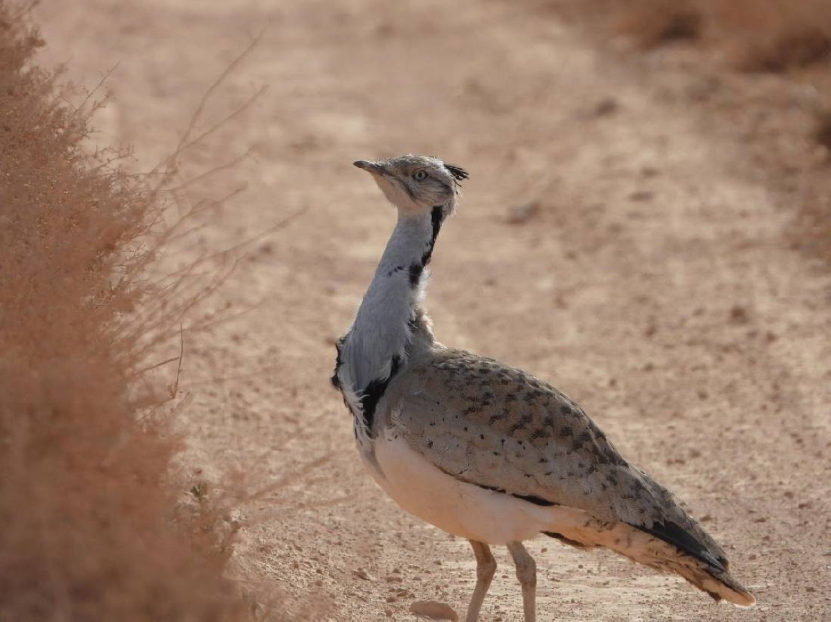 وأوضحت الهيئة أن طائر الحبارى يعشش في أرض مكشوفة ويكون العش عبارة عن حفرة ضحلة غير مبطنة وغالباً يكون موقع العش بالقرب من شجيرة قصيرة، ويتراوح طوله من 55 إلى 75 سم، ووزن ذكر الحبارى من 1800 إلى 3200 جم، والأنثى من 1200 الى 1700 جم، ويبلغ نطاق حركته للبحث عن الغذاء 60 كلم يوميا حيث يتغذى على الحبوب والنباتات والحشرات والديدان، وتضع أنثى الحبارى 2 - 3 بيضات وتصل فترة الحضانة إلى 24 يوما فيما تصبح الفراخ قادرة على الطيران بعد حوالي 35 يوما.