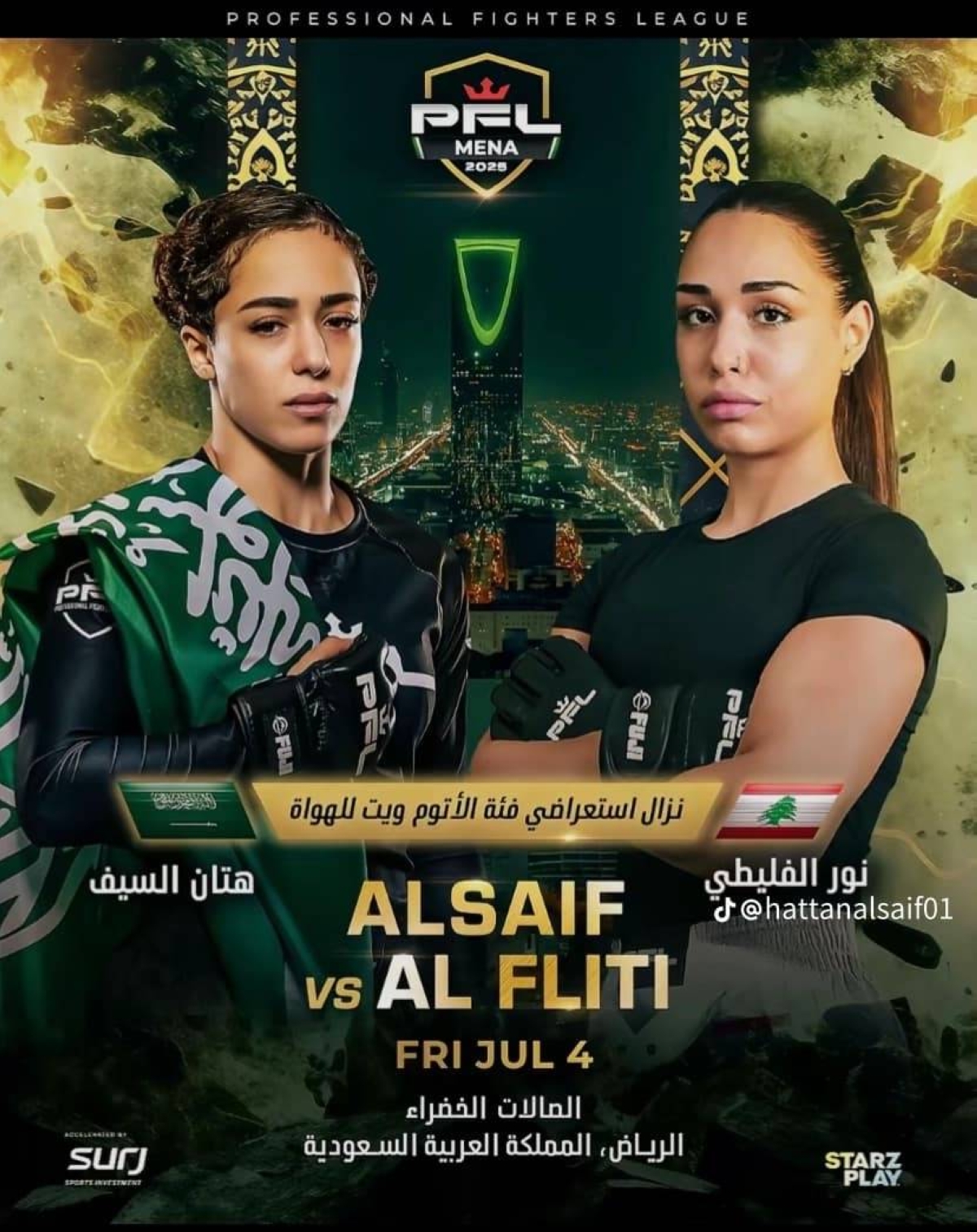 جائت تلك التصريحات في أجواء مشحونة بالحماس والتحدي، حيث تبادلت المقاتلتان السعودية هتان السيف واللبنانية نور الفليطي التصريحات النارية، وذلك قبيل نزالهما المرتقب في دوري المقاتلين المحترفين PFL MENA، الذي تستضيفه الصالات الخضراء بمدينة الرياض في الرابع من يوليو المقبل في نزال استعراضي للهواة.
