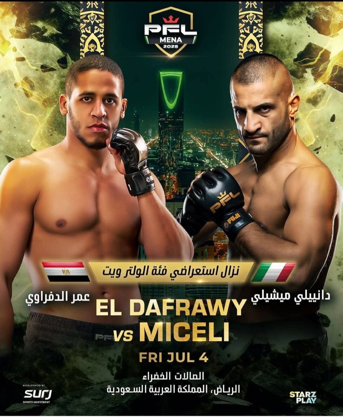 تتجه الأنظار إلى الرياض، حيث تستضيف القاعة الخضراء الجمعة 4 يوليو المقبل النسخة الثانية من دوري المقاتلين المحترفين للشرق الأوسط وشمال إفريقيا (PFL MENA)، بمشاركة نخبة من أبرز مقاتلي المنطقة، وسيتم بث النزالات مباشرة عبر تطبيق STARZPLAY، مع توفر التذاكر عبر موقع Webook.