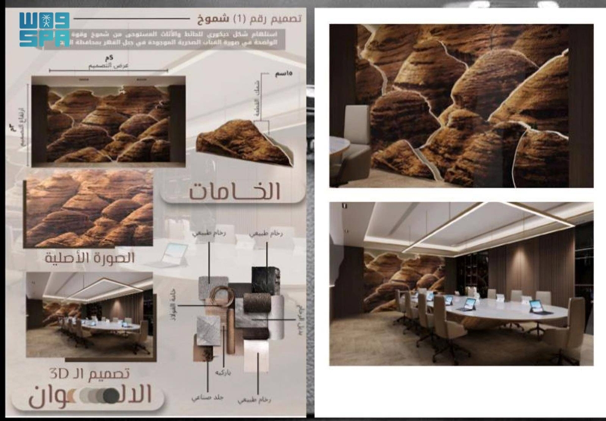 واعتمدت الدراسة على تحليل 15 نموذجا تصميميا من إعدادها، دمجت خلالها صورا فوتوغرافية استلهمتها من ملامح البيئة السعودية الطبيعية والحضرية والثقافية، لتكون جزءا أصيلا من التكوين البصري للفراغ، وتنوعت هذه الصور بين عناصر تراثية، وتكوينات معمارية، ومشاهد طبيعية، حملت في طياتها رموزا محلية عززت من هوية المكان وخصوصيته.