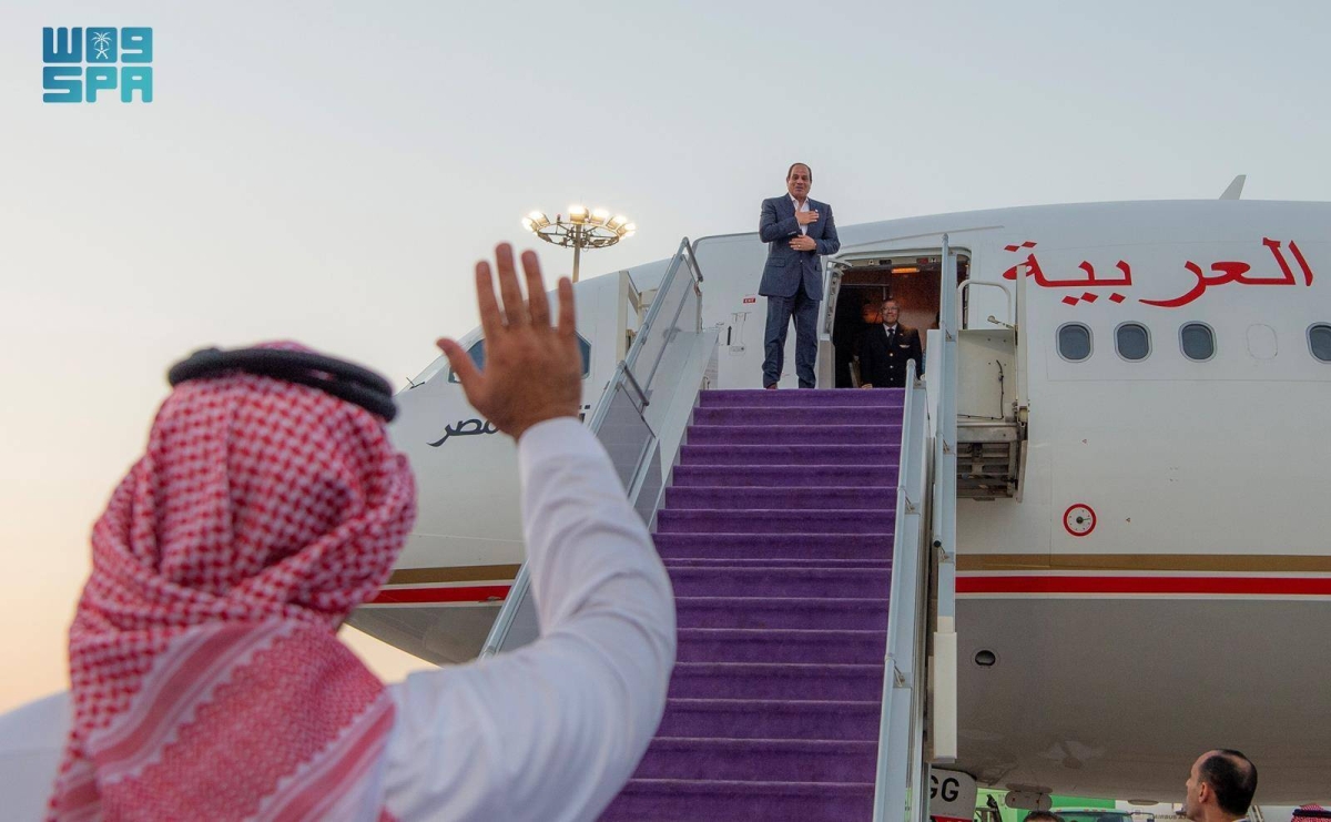وقد وصل الرئيس المصري إلى مطار خليج نيوم، حيث كان في استقباله الأمير محمد بن سلمان بن عبدالعزيز آل سعود ولي العهد رئيس مجلس الوزراء.