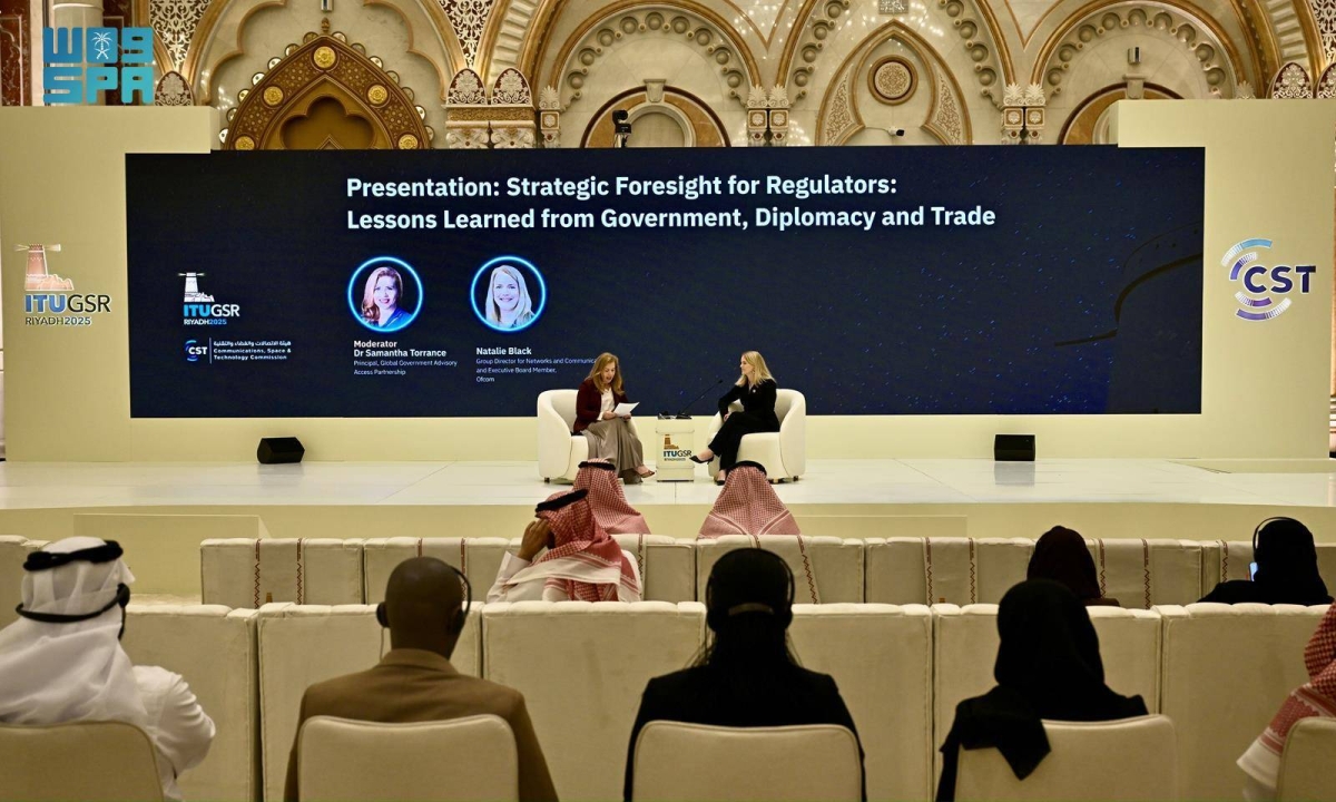 شهد المعرض المصاحب للندوة العالمية لمنظمي الاتصالات (GSR25)، الذي تنظمه هيئة الاتصالات والفضاء والتقنية بمركز الملك عبدالعزيز للمؤتمرات في الرياض، انعقاد جلسة حوارية بعنوان: «الاستشراف الاستراتيجي للجهات التنظيمية: دروس مستفادة حكومية ودبلوماسية وتجارية».