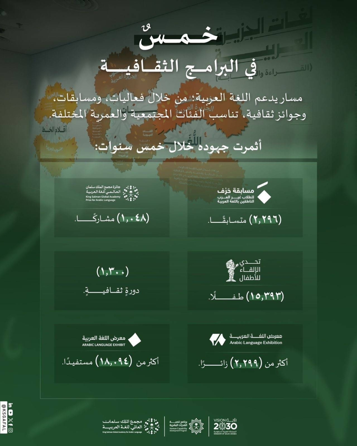 بالأرقام خلال خمس سنوات.. مجمع الملك سلمان العالمي للغة العربية يعزز حضوره عالميًا ومحليًا