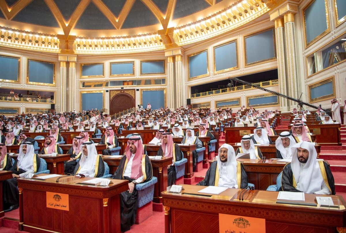 إن مجلس الشورى في سعي دائم لمواكبة عجلة التنمية وفق رؤية المملكة 2030 المباركة من أجل تحقيق تطلعات القيادة الرشيدة التي آمنت بدوره ومنحته رعايتها الكاملة، وهو في هذا اليوم يسعد بتشريفكم، ليبدأ مشوارًا جديدًا من العمل والعطاء لأعمال سنته الثانية من دورته التاسعة بعد أن شهدت سنته الأولى إنجاز العديد من الموضوعات التي خرجت بعد اجتماعات مكثفة، ودراسات كافية، وجهود متواصلة، حيث صدر عن مجلس الشورى خلال السنة الأولى من الدورة التاسعة (462) أربعمائة واثنان وستون قرارًا، منها: (180) مائة وثمانون قرارًا تتعلق بالتقارير السنوية للأجهزة الحكومية، و(55) خمسة وخمسون قرارًا تتعلق بالأنظمة واللوائح، و(225) مائتان وخمسة وعشرون قرارًا تتعلق بالاتفاقيات والمعاهدات ومذكرات التفاهم، كما أن ما يلقاه مجلس الشورى من دعم واهتمام من القيادة الرشيدة -أيدها الله- قد أكسب المجلس مكانة كبيرة وتأثيرًا فاعلًا في العديد من المنظمات والمؤتمرات البرلمانية الإقليمية والدولية، مما أسهم في التعريف بجهود المملكة ومواقفها، وإبراز مكانتها، والدفاع عنها، وخدمة قضاياها في الاجتماعات والمحافل البرلمانية المختلفة.