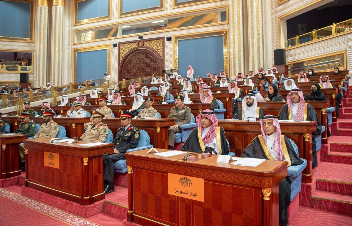 إثر ذلك تشرف نائب رئيس مجلس الشورى الدكتور مشعل السلمي، ومساعد رئيس المجلس الدكتورة حنان الأحمدي، والأمين العام للمجلس الأستاذ محمد المطيري ورؤساء اللجان، بالسلام على ولي العهد.