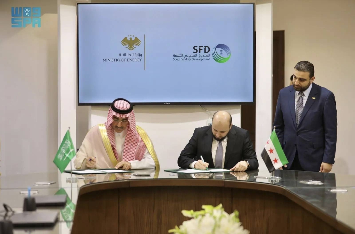 ووُقّعت مذكرة تفاهم بهذا الشأن بين الجانبين، وقعها الرئيس التنفيذي للصندوق السعودي للتنمية سلطان بن عبدالرحمن المرشد، ووزير الطاقة بالجمهورية العربية السورية المهندس محمد البشير، وذلك بحضور سفير خادم الحرمين الشريفين لدى سوريا الدكتور فيصل المجفل، ووكيل وزارة الطاقة للشؤون الفنية والتنظيمية للبترول والغاز المهندس ماجد العتيبي.