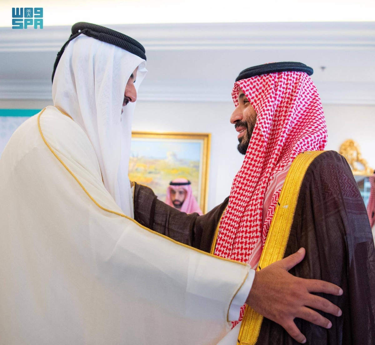 ووصل ولي العهد إلى دولة قطر أمس، لترؤس وفد المملكة المشارك في الدورة الاستثنائية للمجلس الأعلى لمجلس التعاون لدول الخليج العربية، والقمة العربية الإسلامية الطارئة، حيث كان في استقباله لدى وصوله مقر انعقاد الدورة الاستثنائية، الشيخ تميم بن حمد آل ثاني أمير دولة قطر.