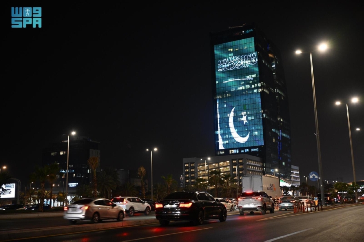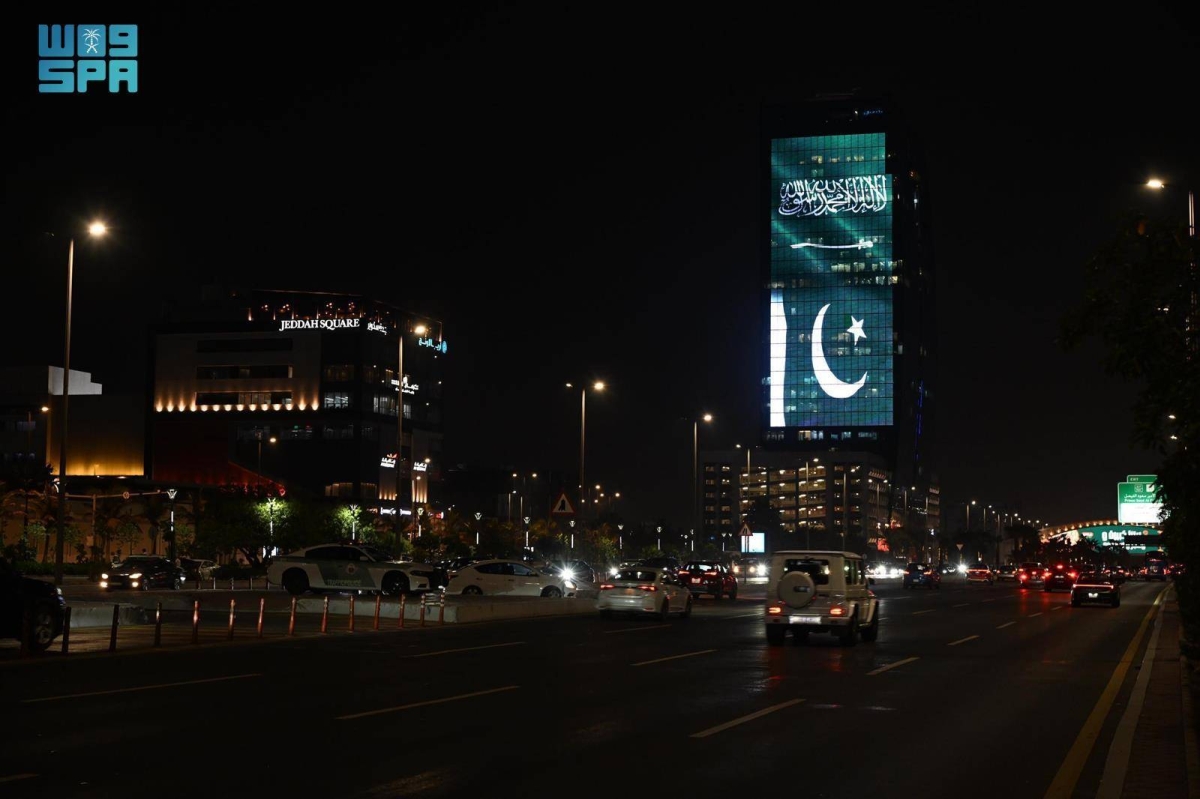 أبراج مدن المملكة تتوشح بعلمي المملكة وباكستان
