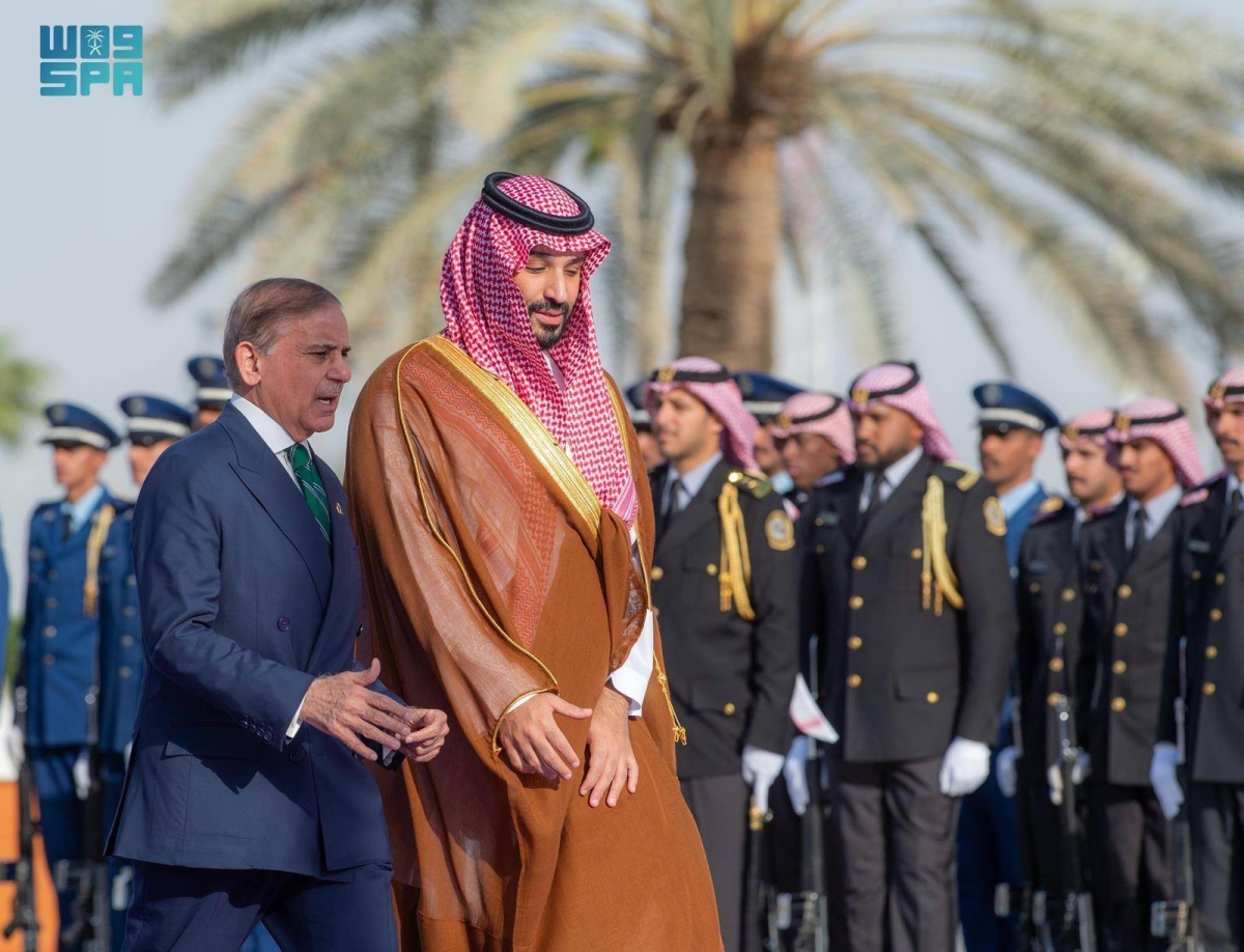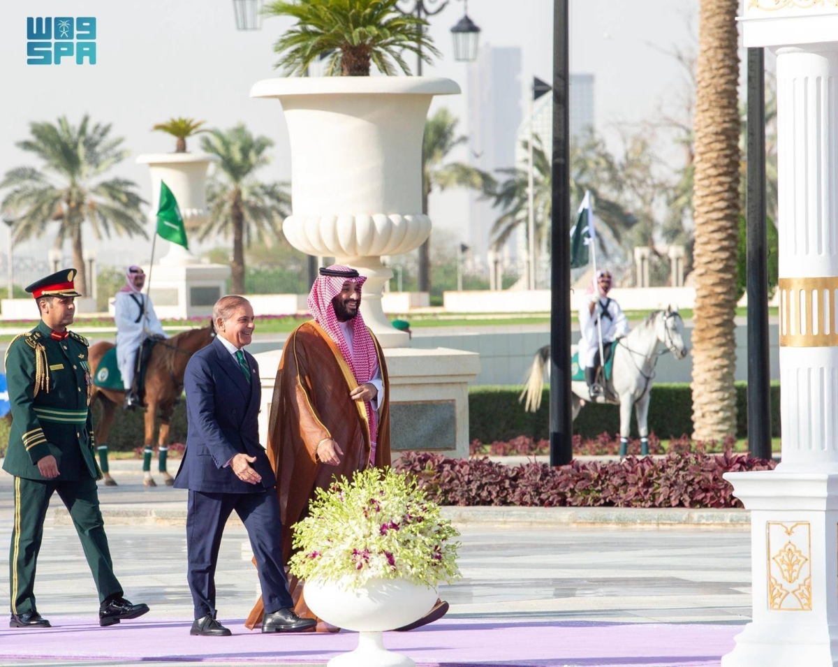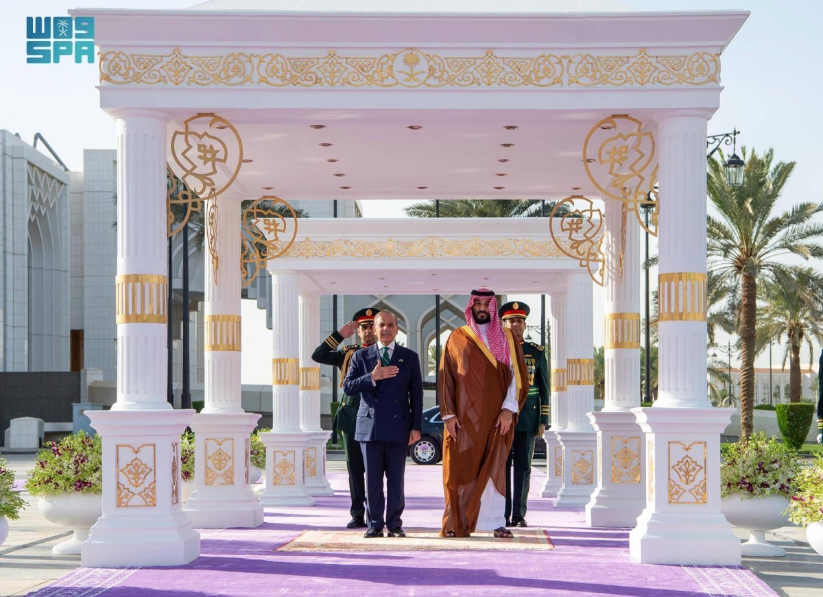 وعقد الأمير محمد بن سلمان بن عبدالعزيز آل سعود ولي العهد رئيس مجلس الوزراء والسيد محمد شهباز شريف رئيس وزراء جمهورية باكستان الإسلامية جلسة مباحثات رسمية، استعرضا خلالها العلاقات الثنائية الوثيقة بين السعودية وجمهورية باكستان الإسلامية، والجهود التنسيقية لتعزيز أوجه الشراكة الاستراتيجية بين البلدين الشقيقين في مختلف المجالات، إلى جانب بحث تطورات الأوضاع الإقليمية والدولية والقضايا ذات الاهتمام المشترك والجهود المبذولة تجاهها، بما يحقق الأمن والاستقرار.