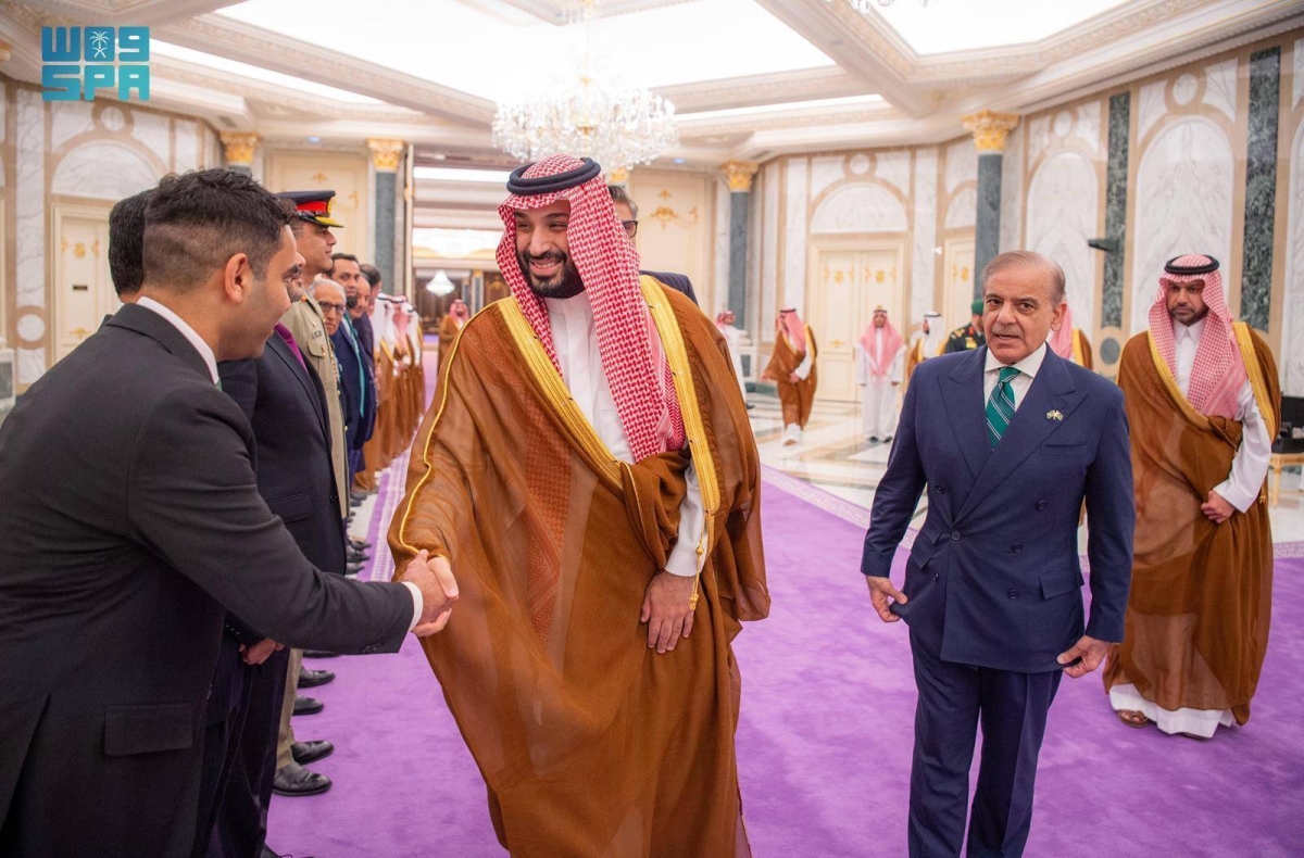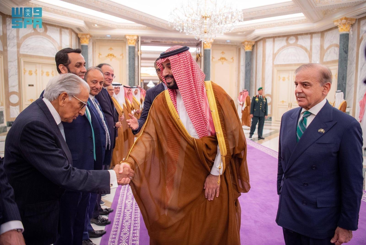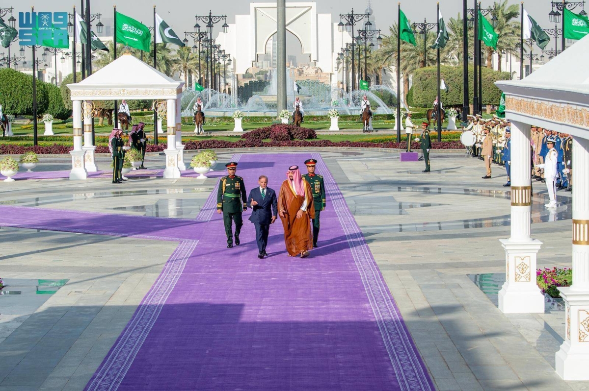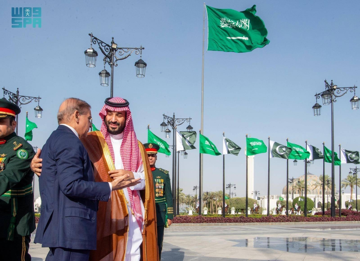 وعقد الأمير محمد بن سلمان بن عبدالعزيز آل سعود ولي العهد رئيس مجلس الوزراء والسيد محمد شهباز شريف رئيس وزراء جمهورية باكستان الإسلامية جلسة مباحثات رسمية، استعرضا خلالها العلاقات الثنائية الوثيقة بين السعودية وجمهورية باكستان الإسلامية، والجهود التنسيقية لتعزيز أوجه الشراكة الاستراتيجية بين البلدين الشقيقين في مختلف المجالات، إلى جانب بحث تطورات الأوضاع الإقليمية والدولية والقضايا ذات الاهتمام المشترك والجهود المبذولة تجاهها، بما يحقق الأمن والاستقرار.