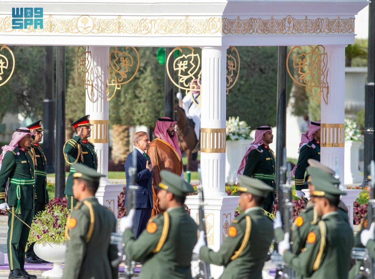 وقد أقام ولي العهد مأدبة غداء رسمية تكريما لرئيس الوزراء الباكستاني.