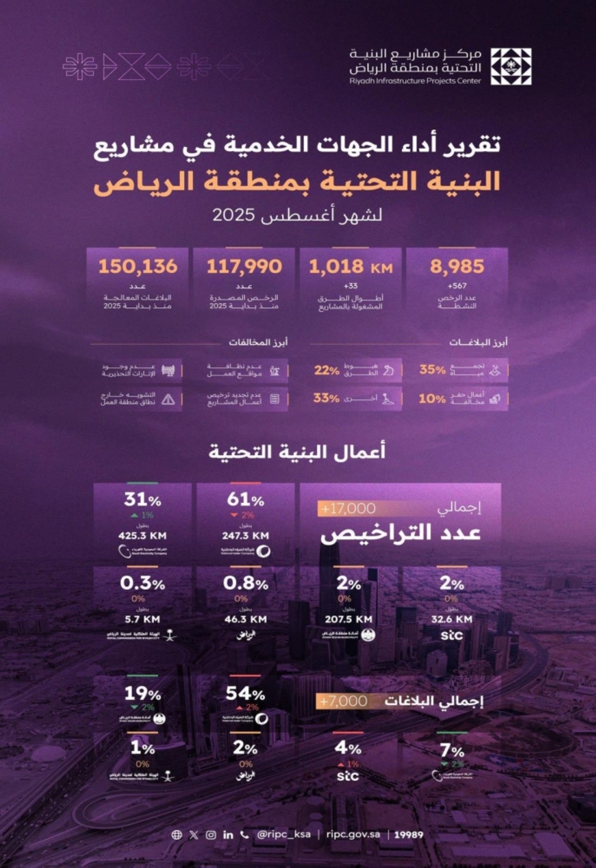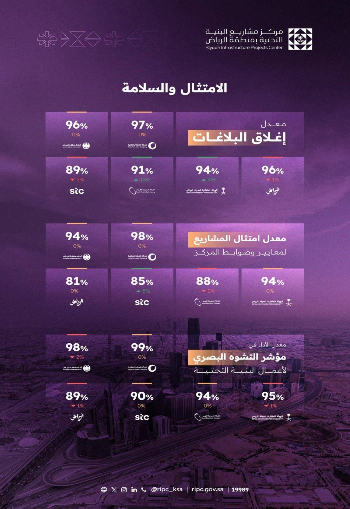 مركز البنية التحتية بالرياض يصدر تقرير أداء الجهات الخدمية لشهر أغسطس