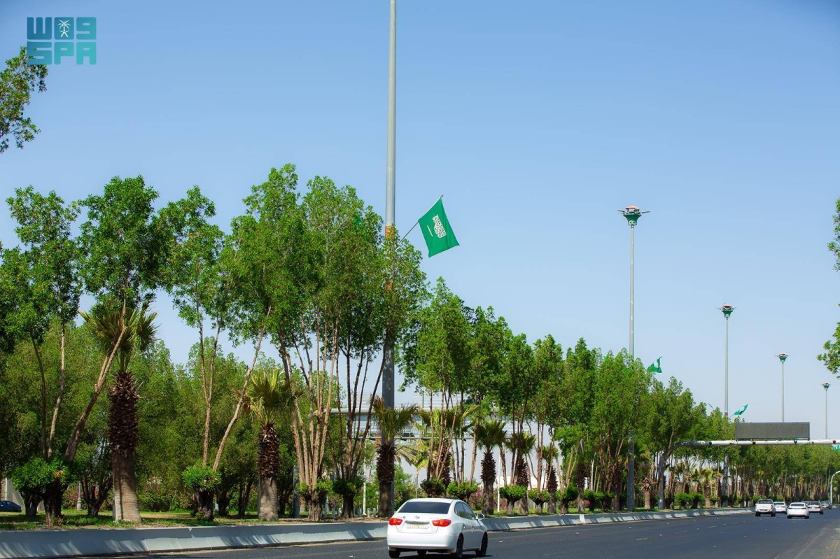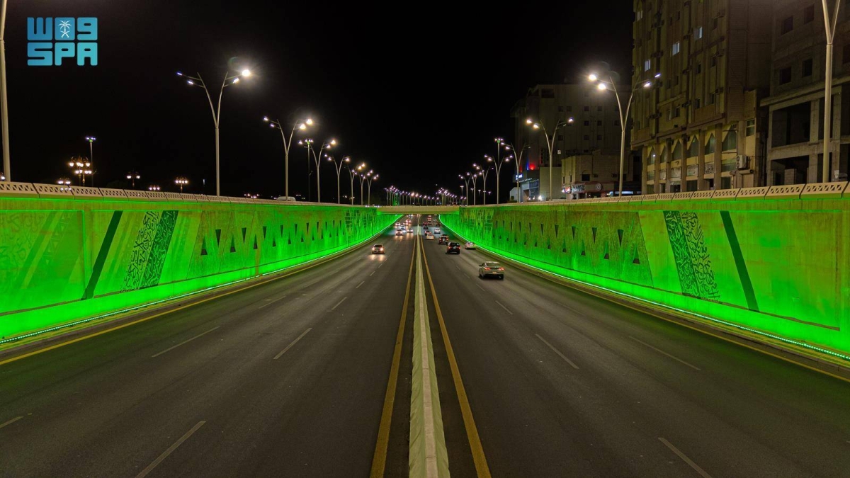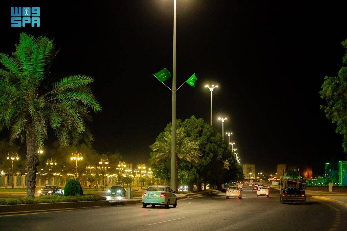 وأوضحت الأمانة أنها أكملت تنفيذ مظاهر الاحتفاء في الطرق والحدائق والميادين، حيث توشحت مدينة تبوك ومحافظاتها ومراكزها بـ8000 علم، وأكثر من 65,476 مترا طوليا من أساور الزينة الخضراء على أعمدة الإنارة والأشجار، إلى جانب تشغيل 250 كشافا ثابتا لإنارة الجسور والأنفاق باللون الأخضر، ونشر عبارات التهنئة بهذه المناسبة عبر أكثر من 40 شاشة ولافتة طرقية.