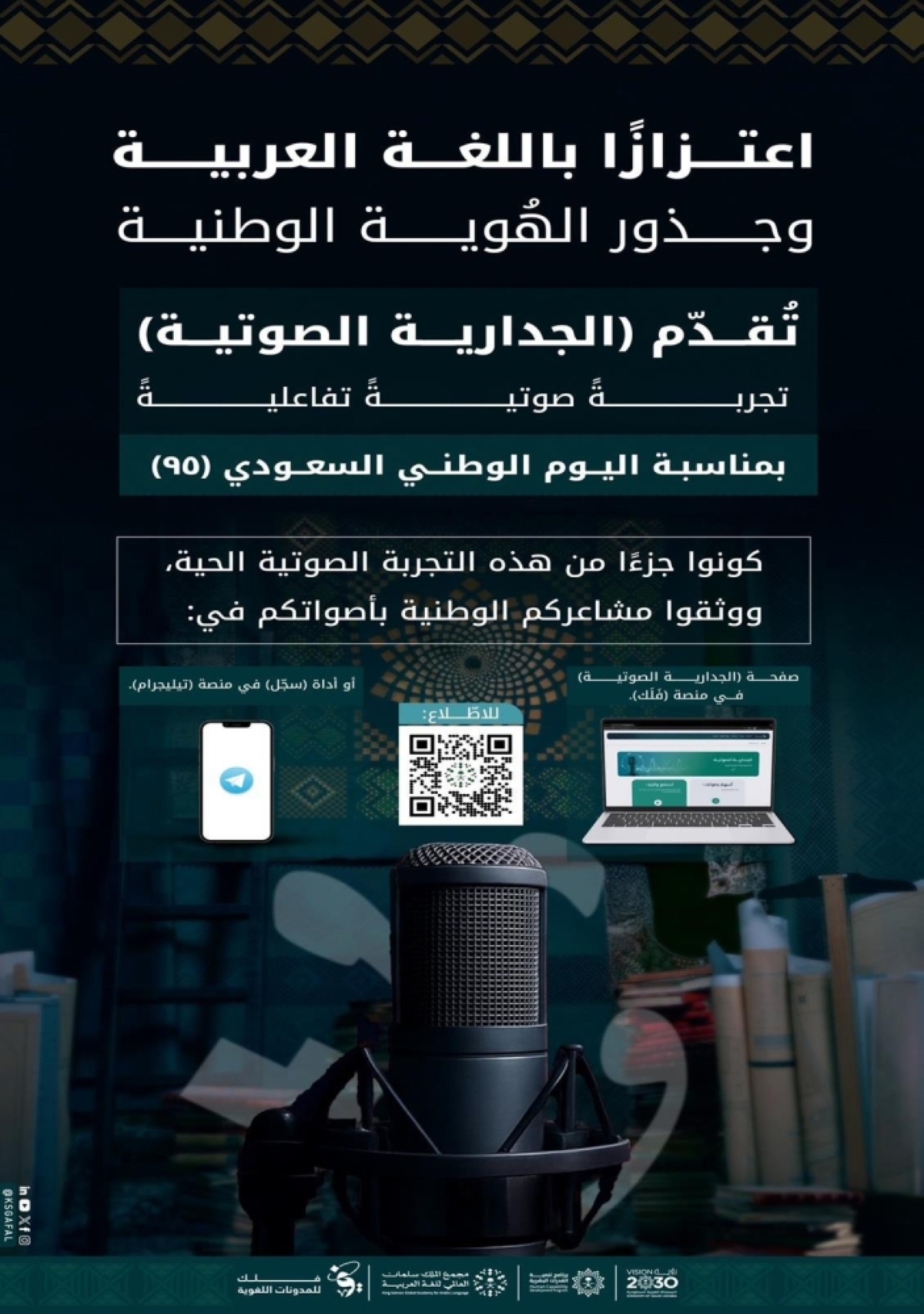 مجمع الملك سلمان العالمي للغة العربية يحتفي باليوم الوطني عبر «الجدارية الصوتية»