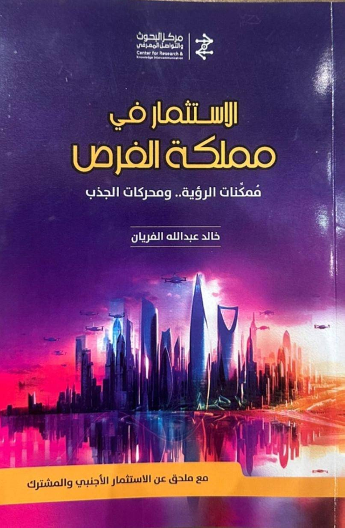 أصدر مركز البحوث والتواصل المعرفي كتاب "الاستثمار في مملكة الفرص"، بثلاث لغات هي: العربية والإنجليزية والصينية, من تأليف المختص في الاستثمار خالد بن عبدالله الفريان.